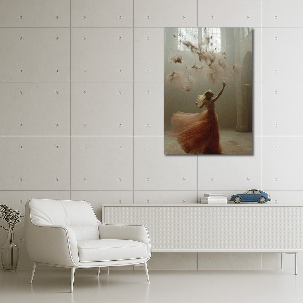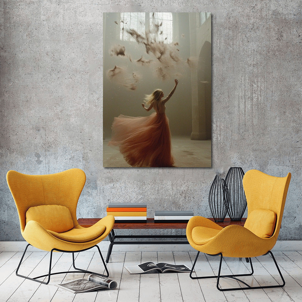 Ephemeral beauty: a dancing girl surrounded by a swirl of petals in a mysterious light. A poster that inspires you to dream. See more from the collection: Mixed Wall Art
