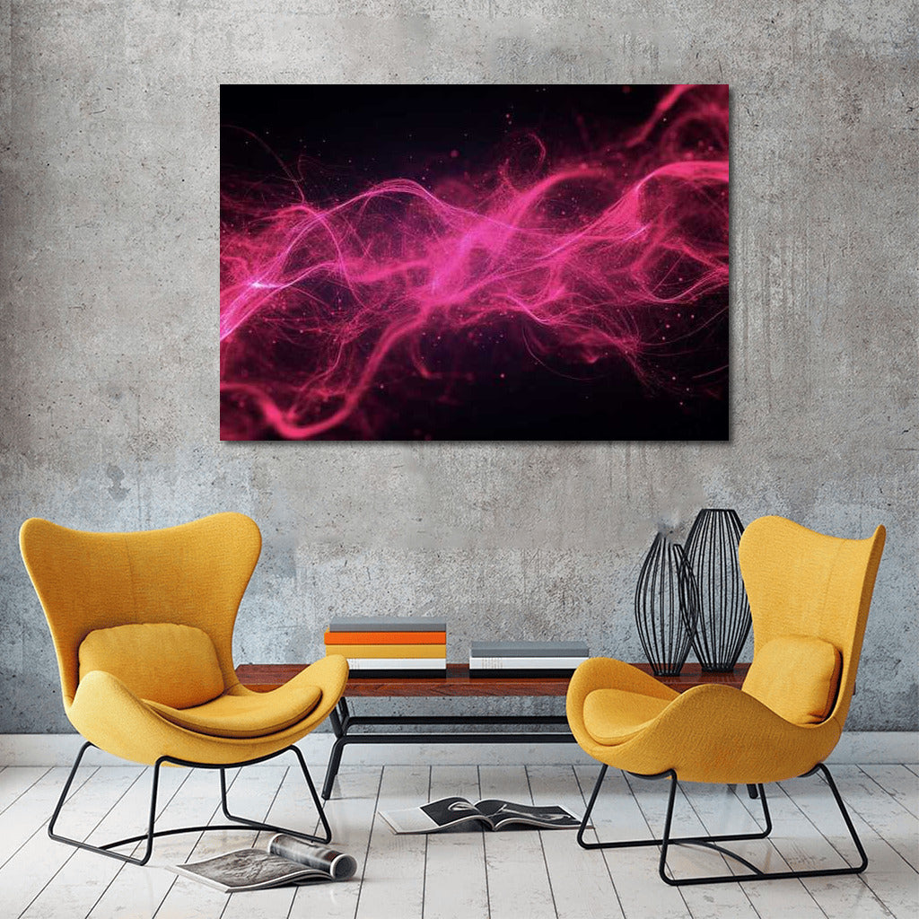Abstract wall art: The dynamics of pink particles come to life in the poster, creating an atmosphere of mystery and energy. See more from the collection: Abstract Art