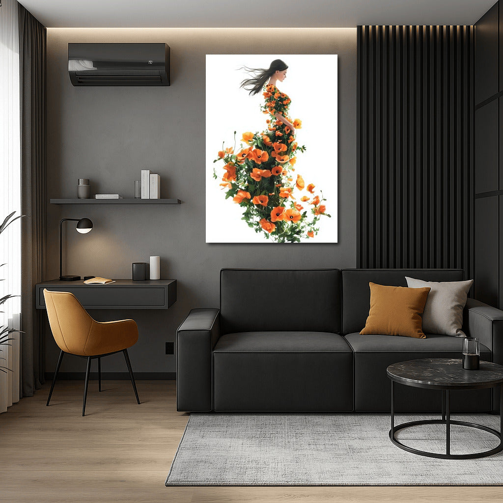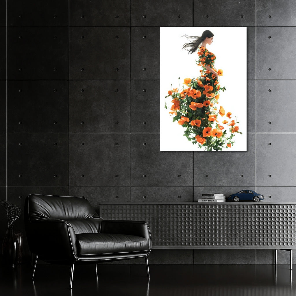 A painting of nature and grace: a silhouette intertwined with colorful poppies. A perfect poster for your home. Wall art of inspiration! See more from the collection: Flowers Art