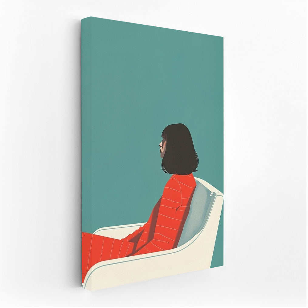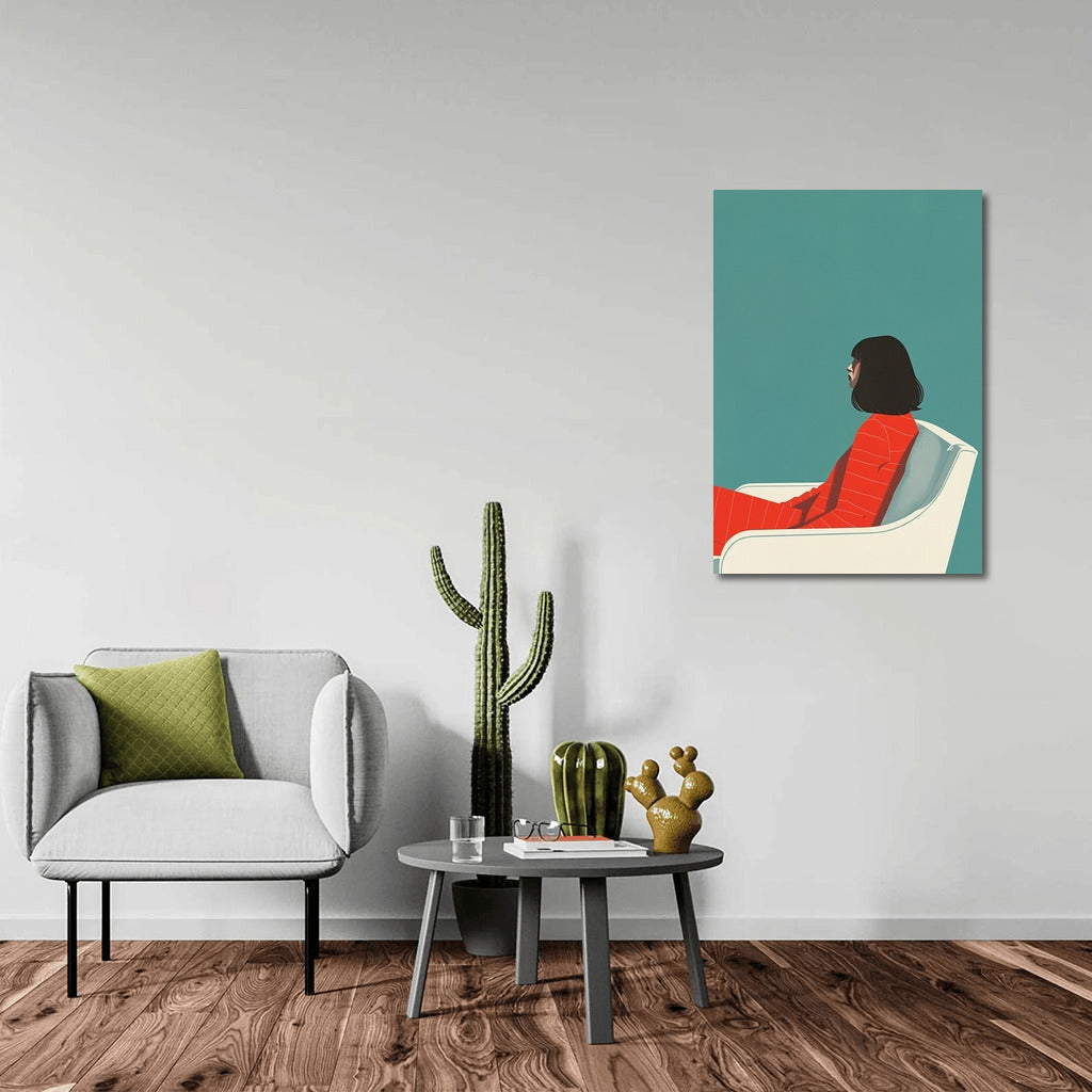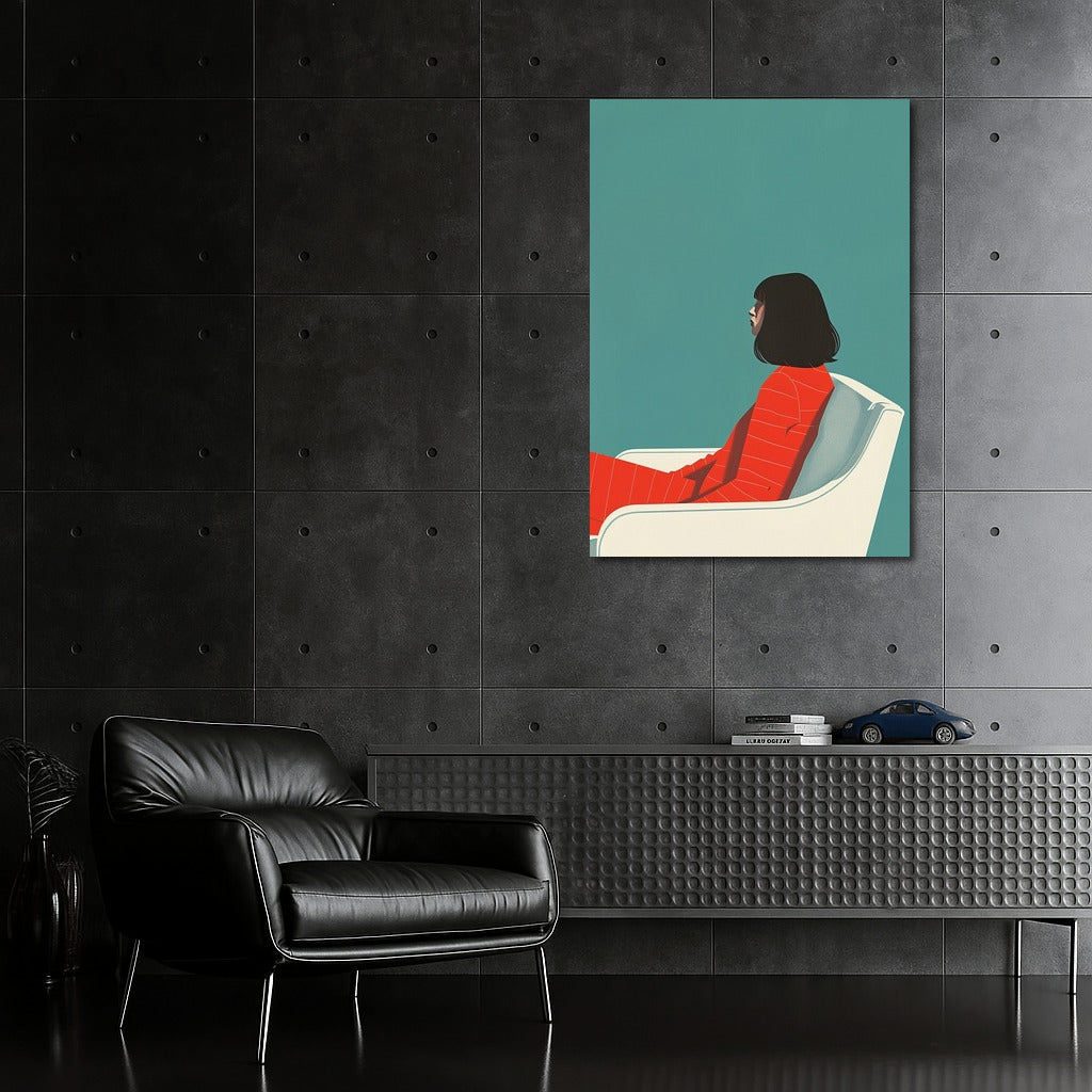 Elegant poster with abstract figure in red on blue background. Modern wall art for stylish interior. See more from the collection: Mixed Wall Art