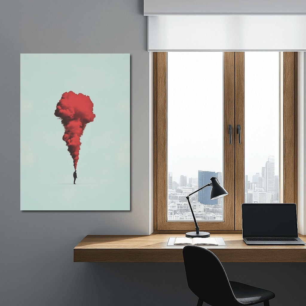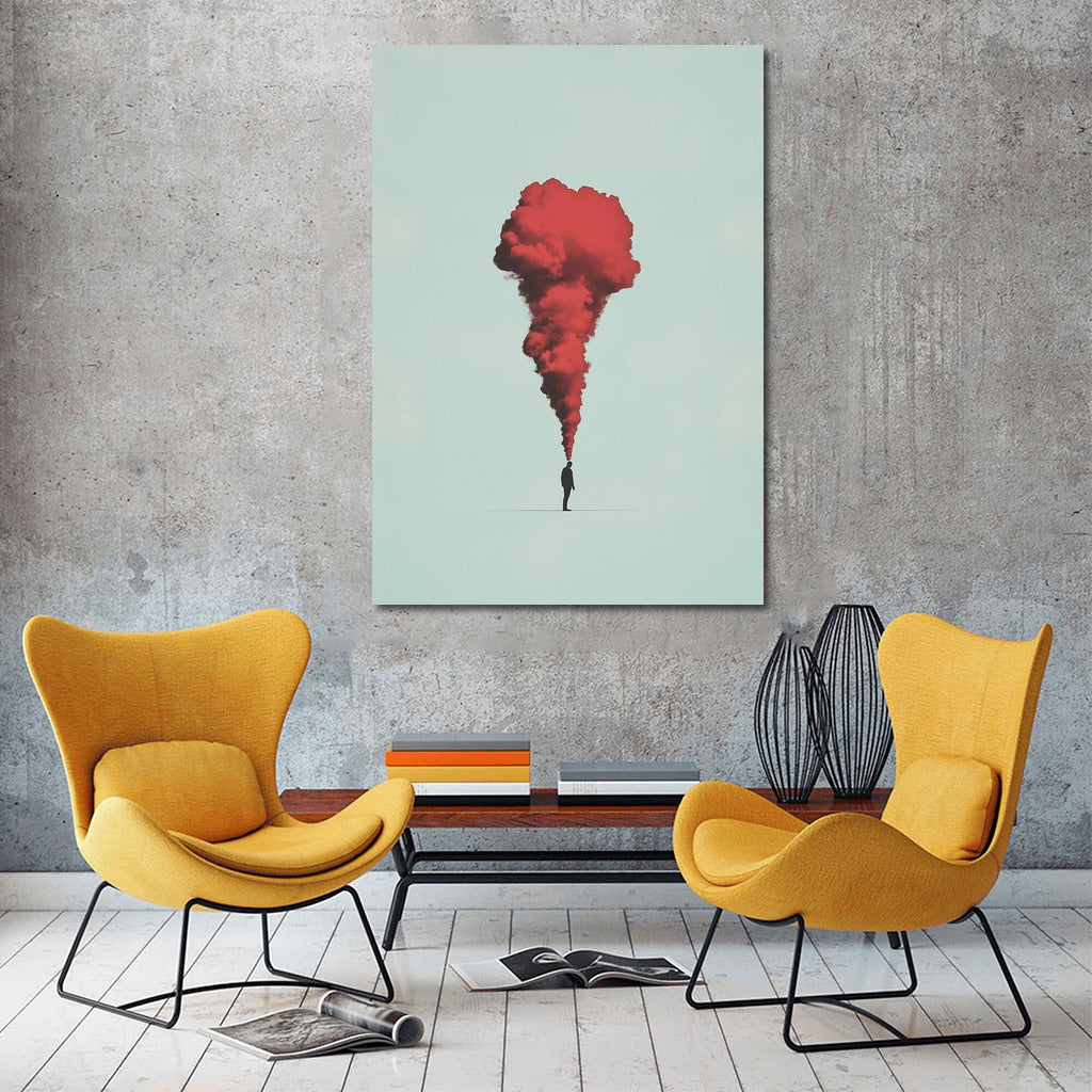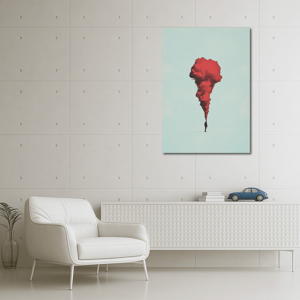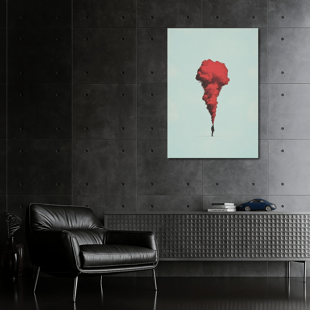 A mysterious silhouette and a scarlet cloud - a poster that will take you to a fantasy world. Perfect wall art for lovers of abstraction. See more from the collection: Mixed Wall Art