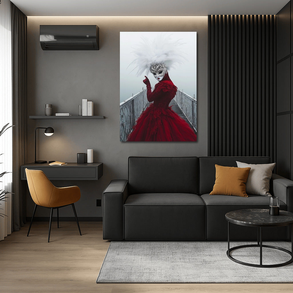A mysterious figure in a lush red mask against a foggy backdrop. This poster will add intrigue and style to your wall art. See more from the collection: Mixed Wall Art