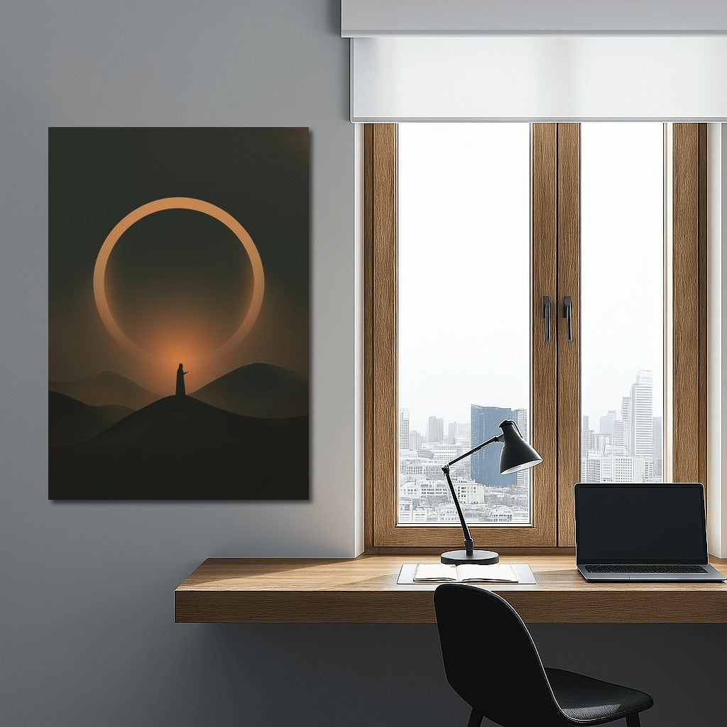 A mysterious silhouette against a glowing circle, this poster will become the centerpiece of your wall art, adding a touch of mysticism to your interior. See more from the collection: Mixed Wall Art