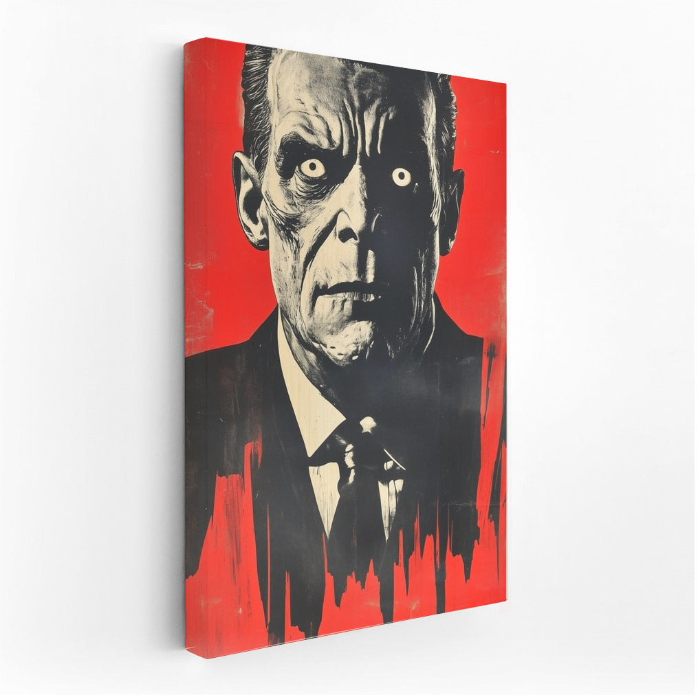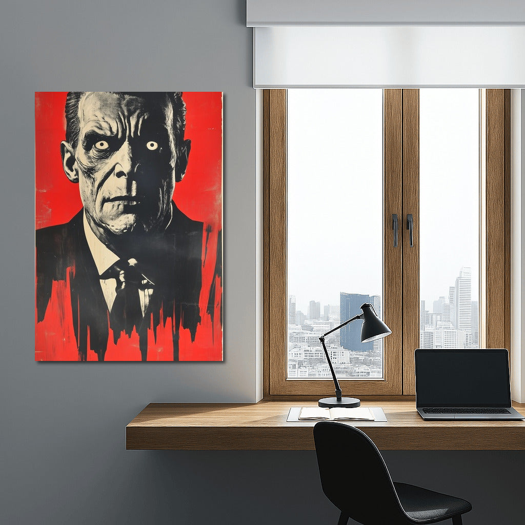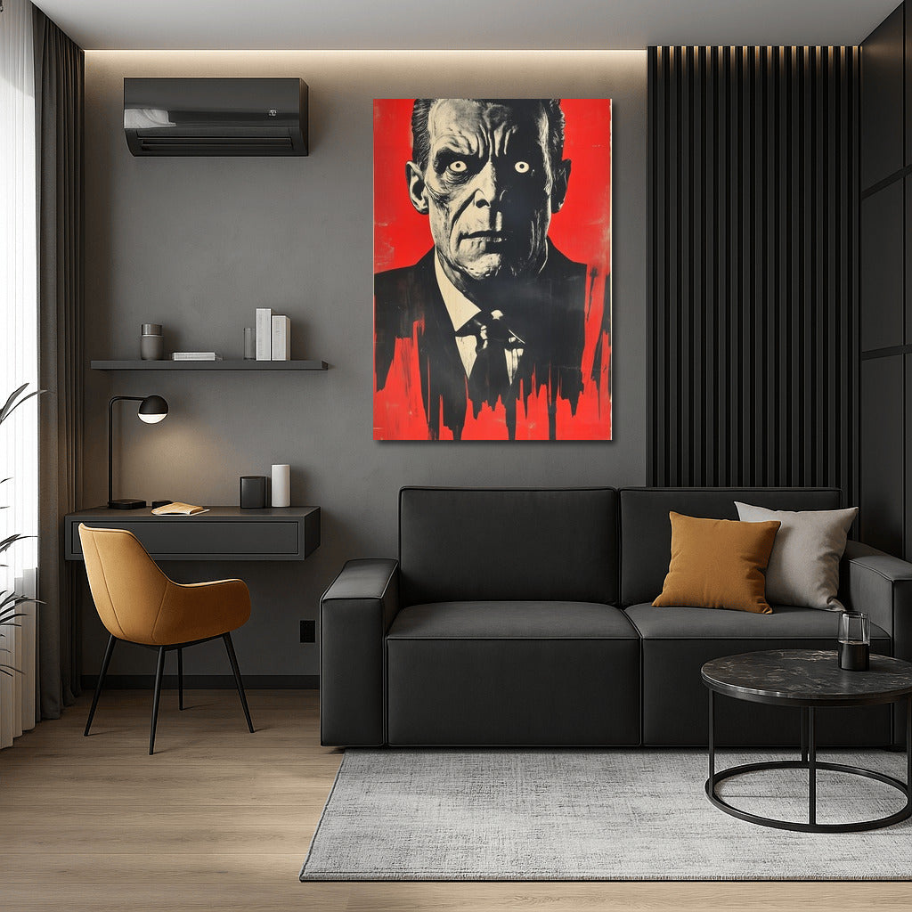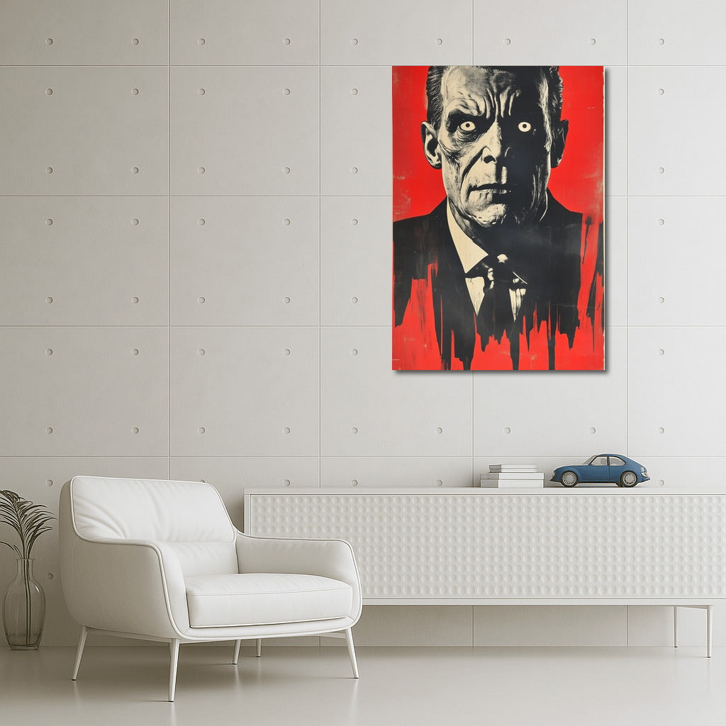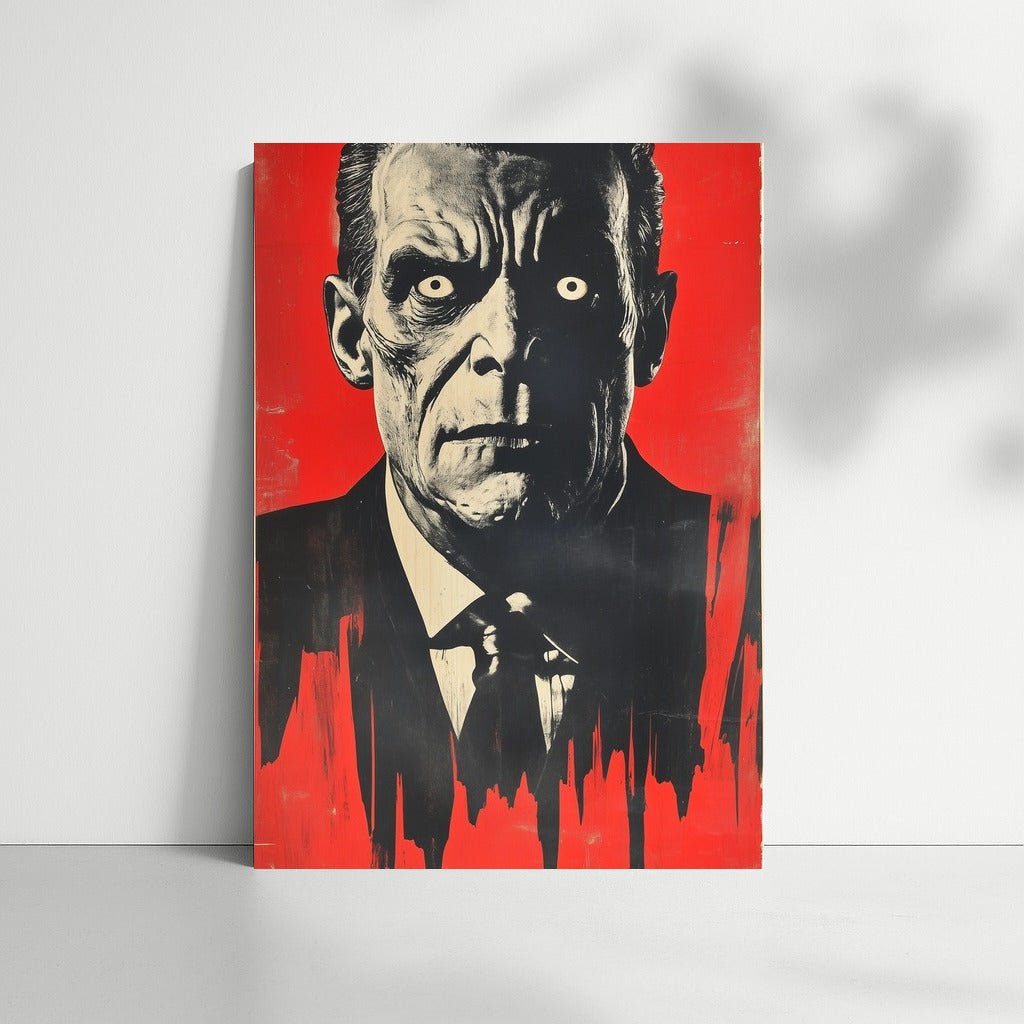Bold poster: a mystical figure on a bright red background captivates the eye. Modern wall art in your interior. See more from the collection: Horror Art