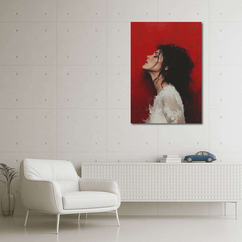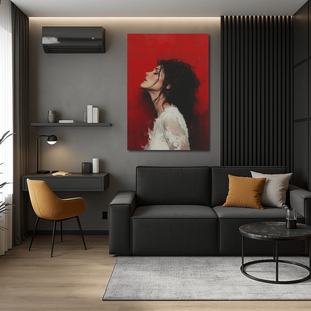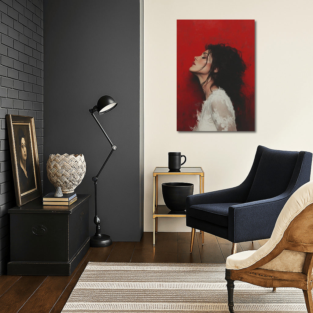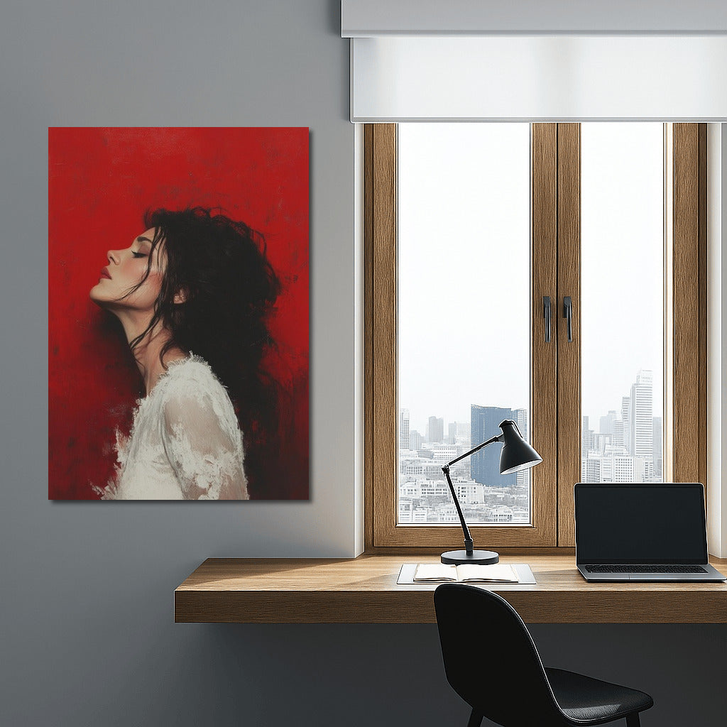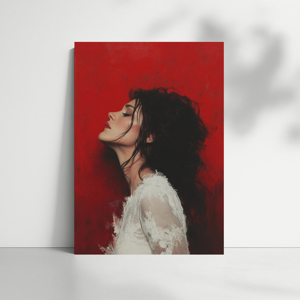 Immerse yourself in the emotion of wall art! This poster featuring a mysterious figure on a bright red background will bring life to any space. See more from the collection: Wall Art with Women
