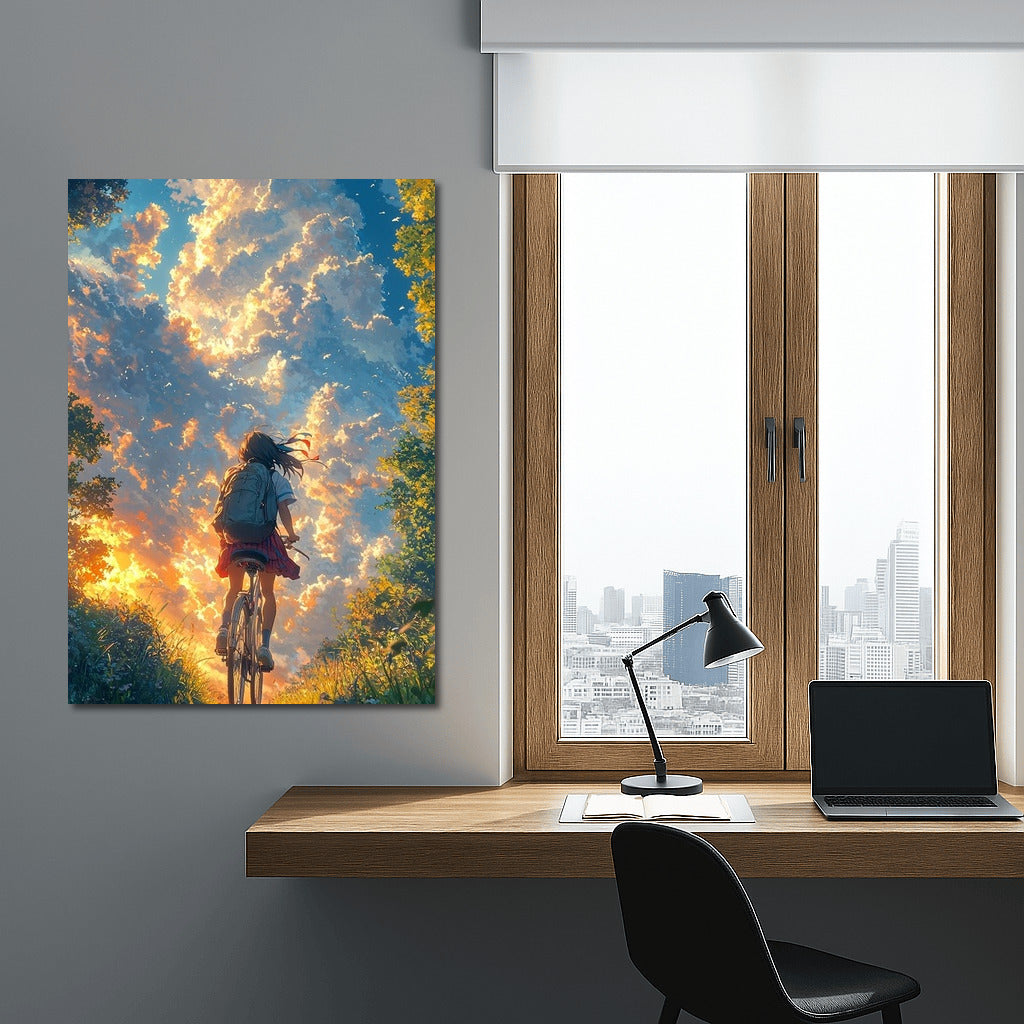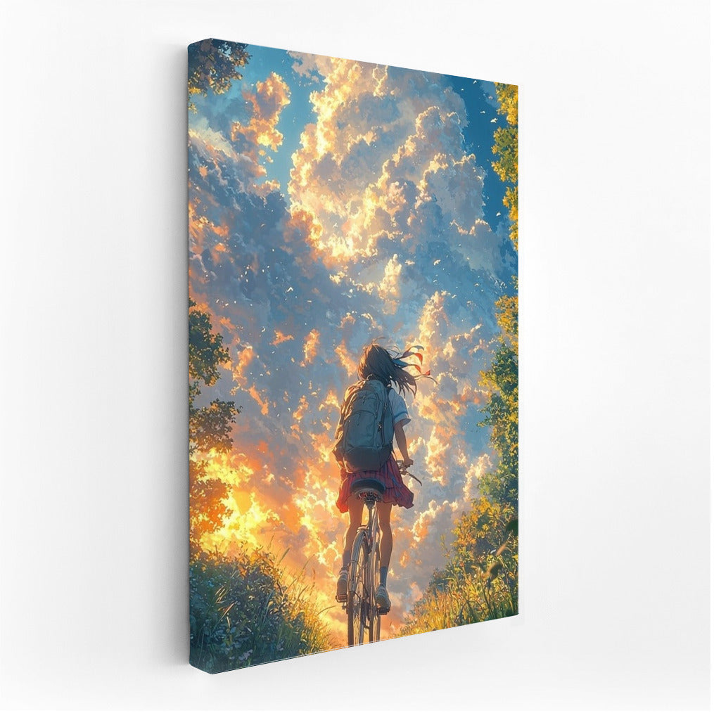 Take a dreamy journey with this painting. Swirling clouds and sunlight bring the wall art to life. See more from the collection: Anime & Manga genres Art