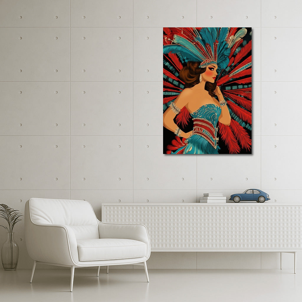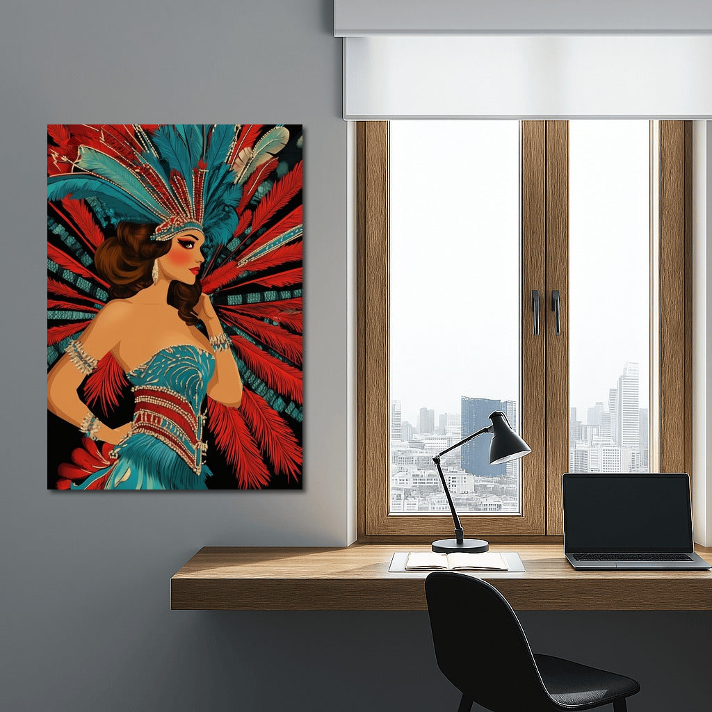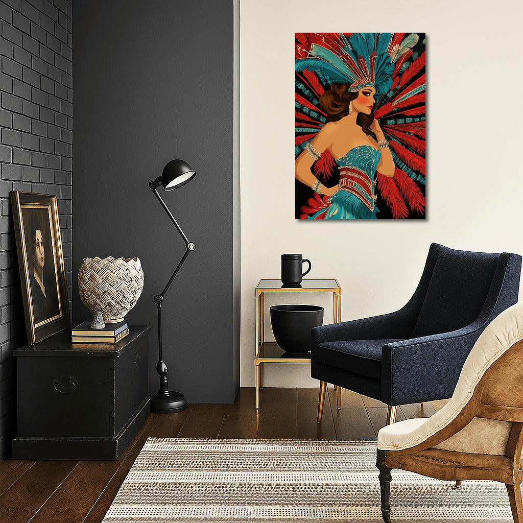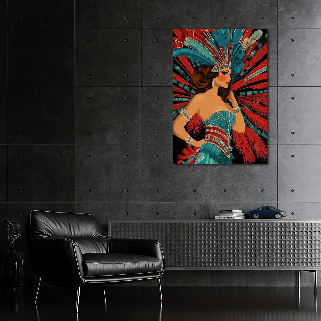 An exotic poster with bright feathers and grace adorns the walls, turning the space into a celebration of color and art. See more from the collection: Mixed Wall Art