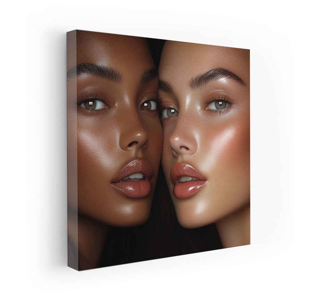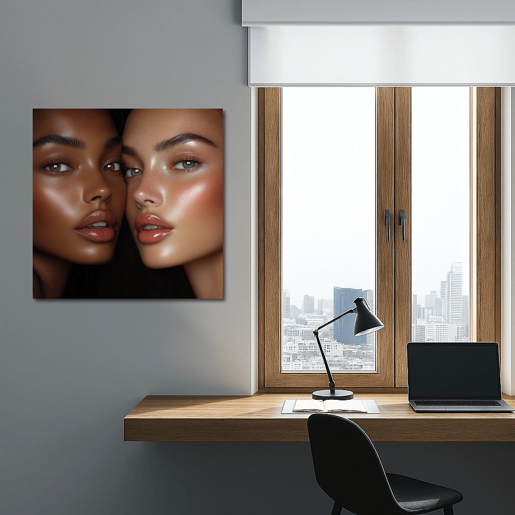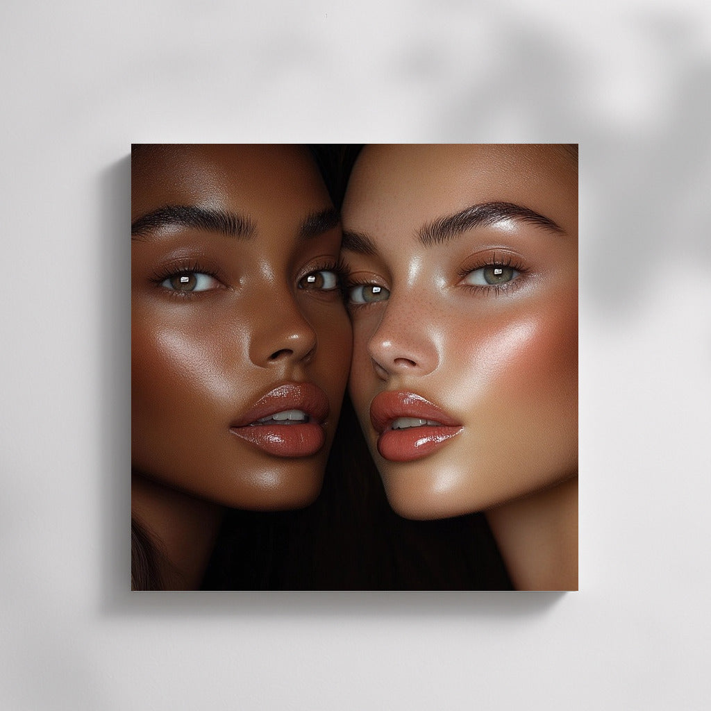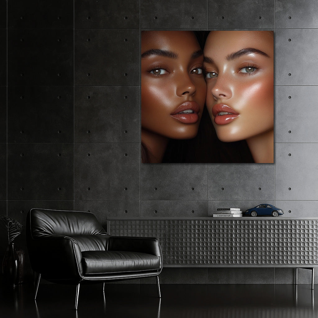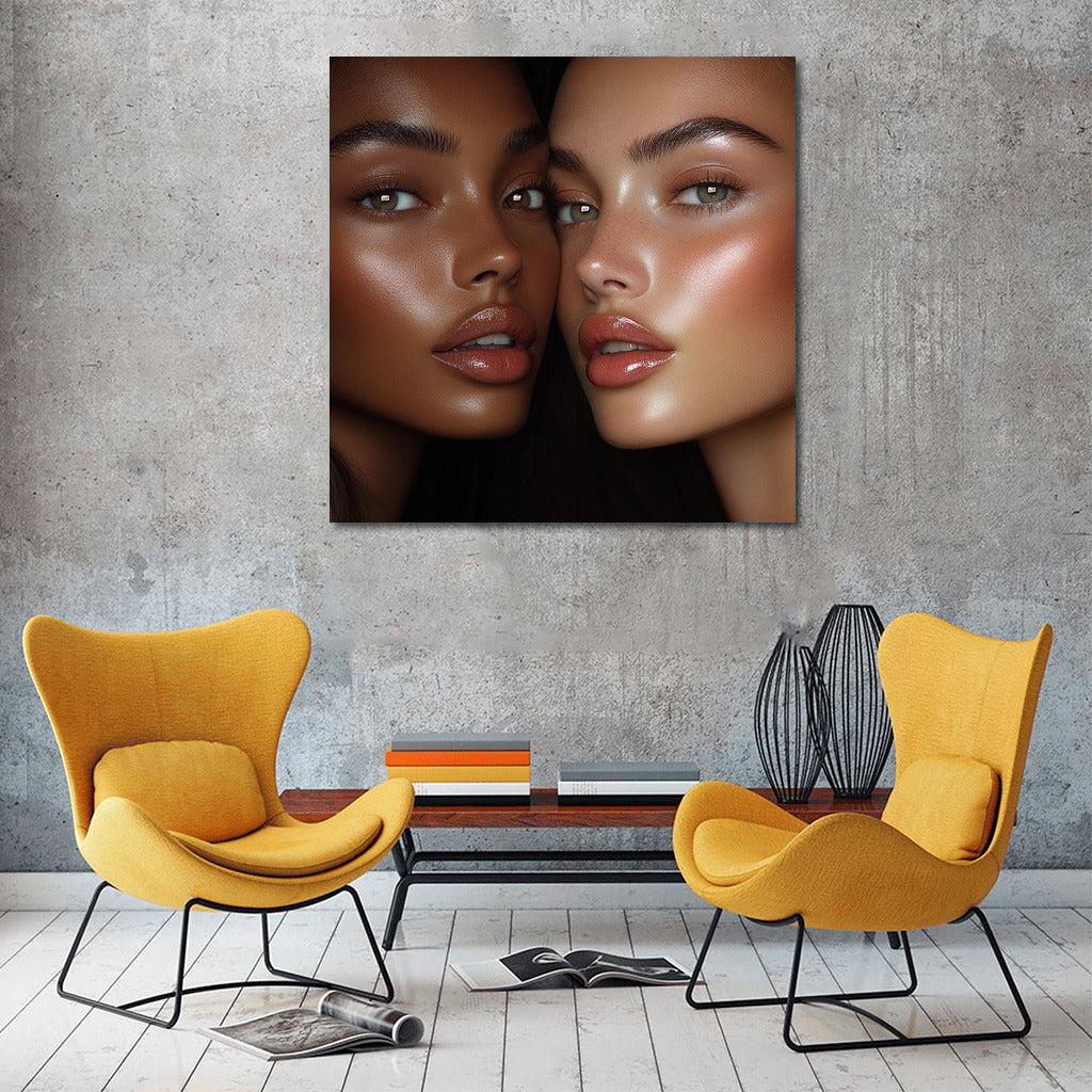 An elegant poster of two girls gracefully conveys beauty and harmony. Ideal wall art for a unique interior. See more from the collection: Wall Art with Women