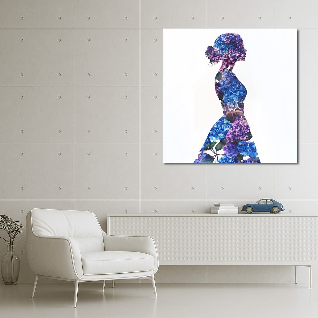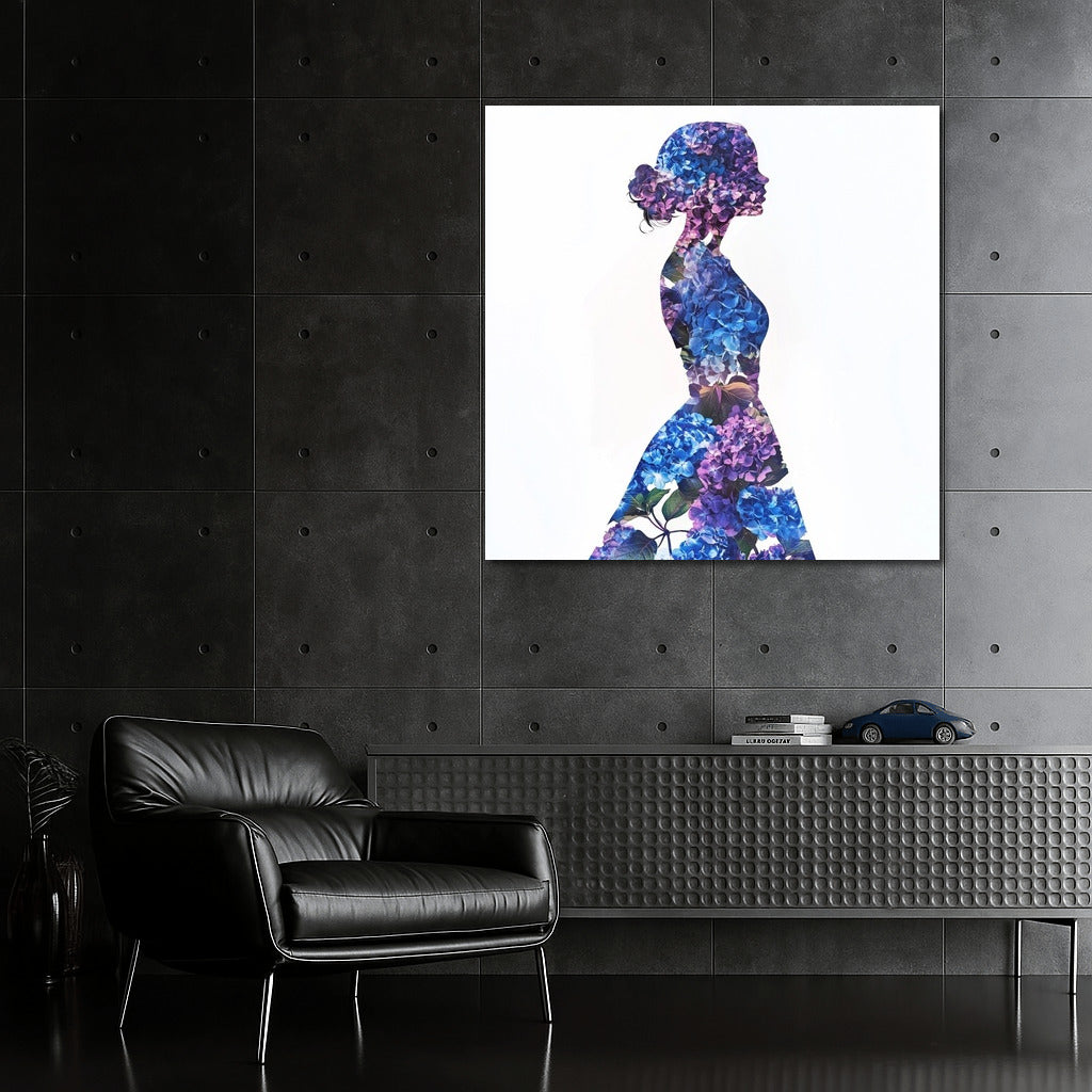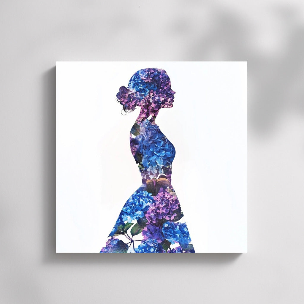 Silhouette intertwined with purple hydrangeas creates a unique poster painting for your space. Wall art. See more from the collection: Purple Flowers Art