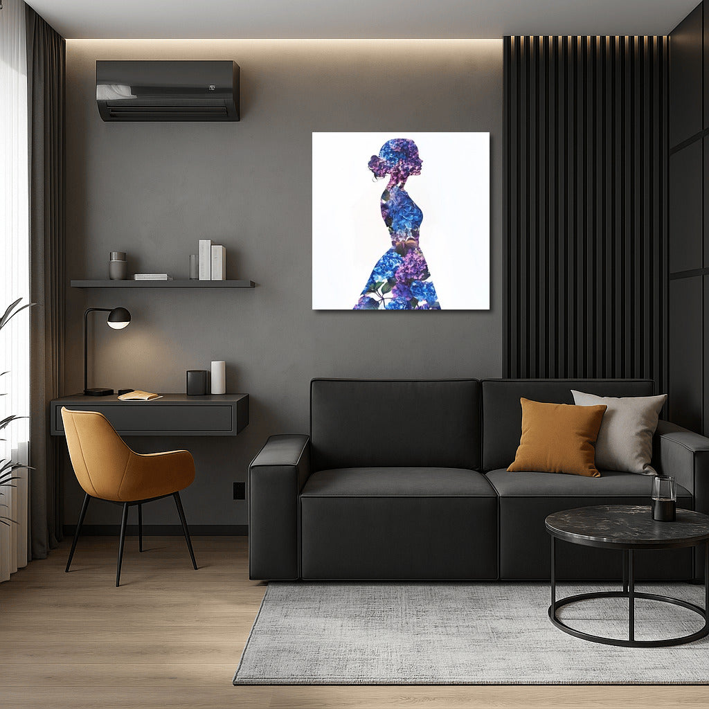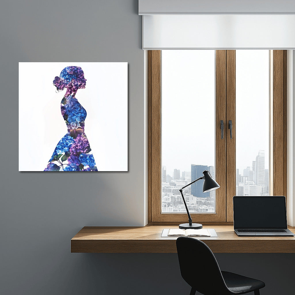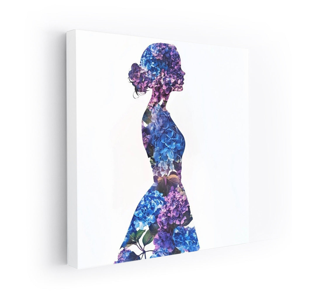 Silhouette intertwined with purple hydrangeas creates a unique poster painting for your space. Wall art. See more from the collection: Purple Flowers Art