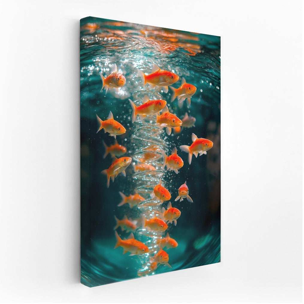 This mesmerizing painting immerses you in a world of colorful fish and underwater whirlpools. Perfect wall art to refresh your interior. See more from the collection: Animals Art