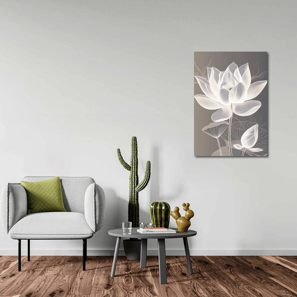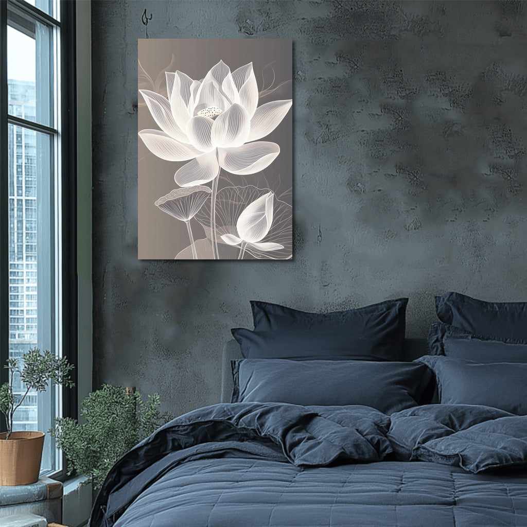 Elegant floral poster: white lotus in fine lines is perfect wall art for sophisticated decor. See more from the collection: Lotus Art