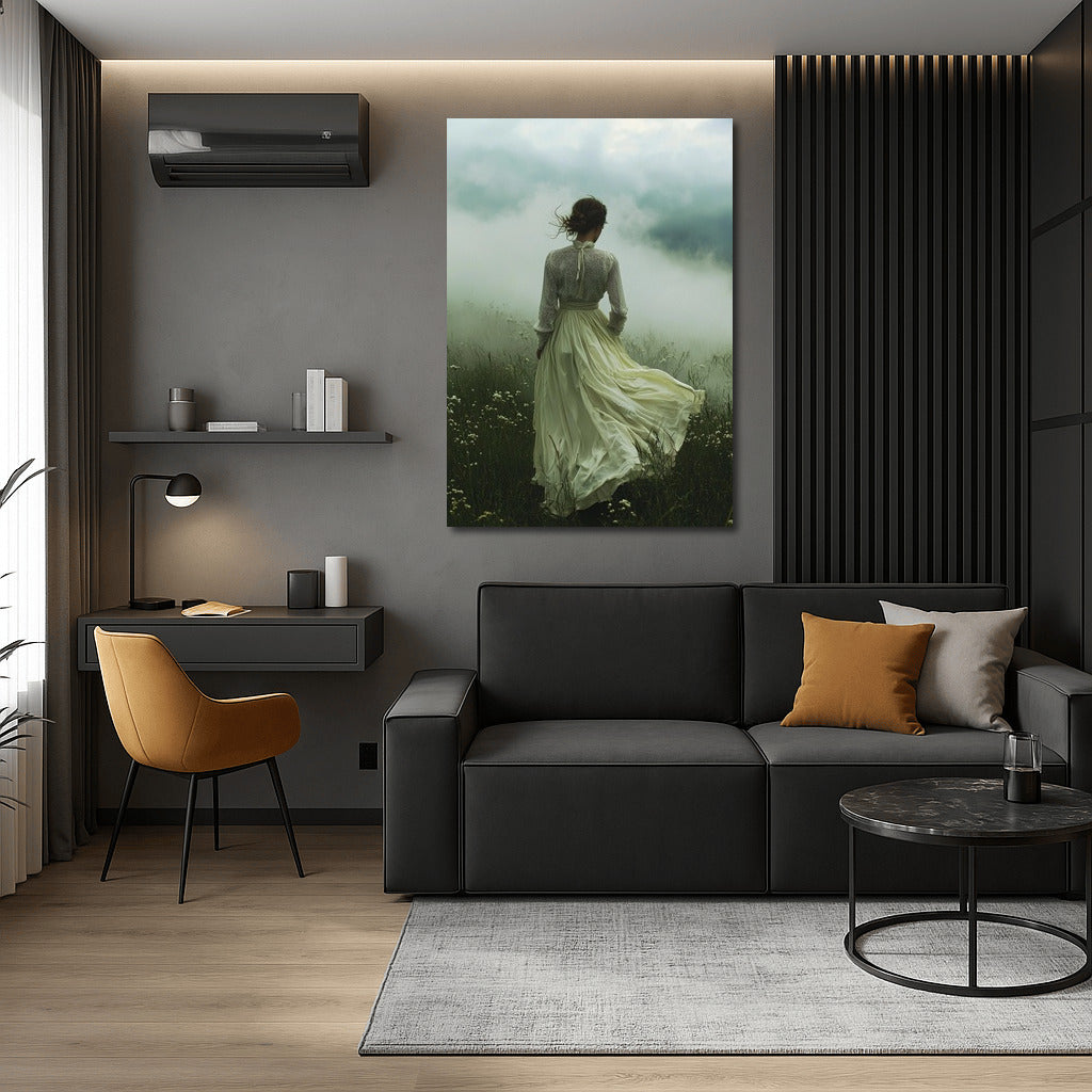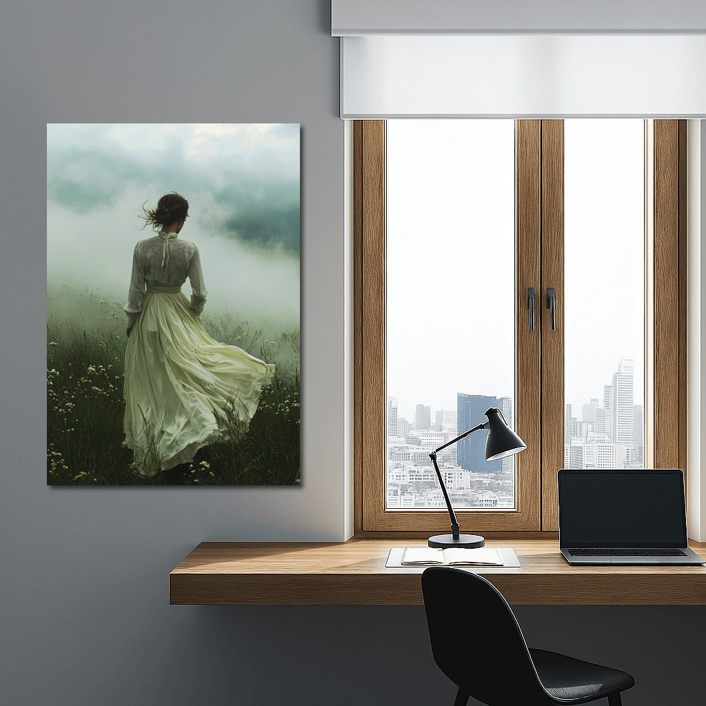 A graceful figure in a white dress dissolves into the mist. Beautiful wall art will fill your home with mystery and elegance. See more from the collection: Mixed Wall Art
