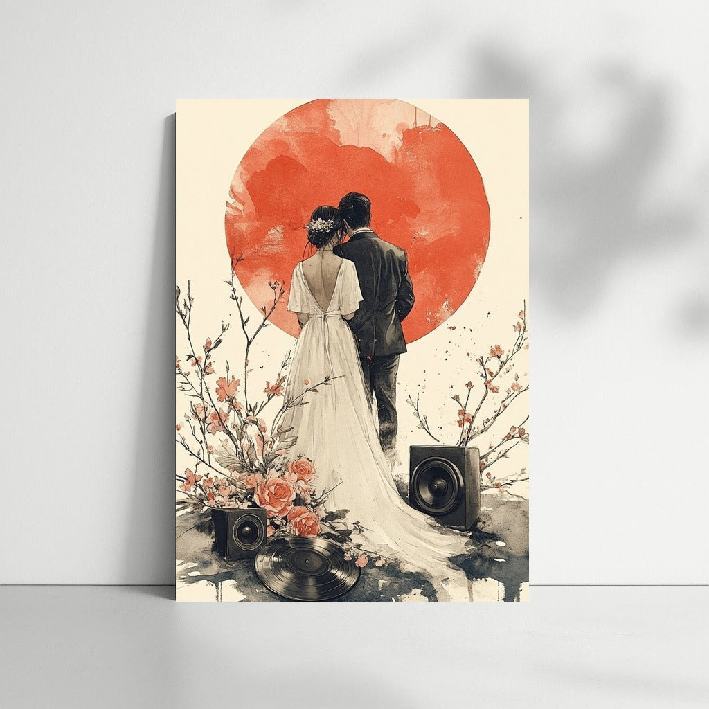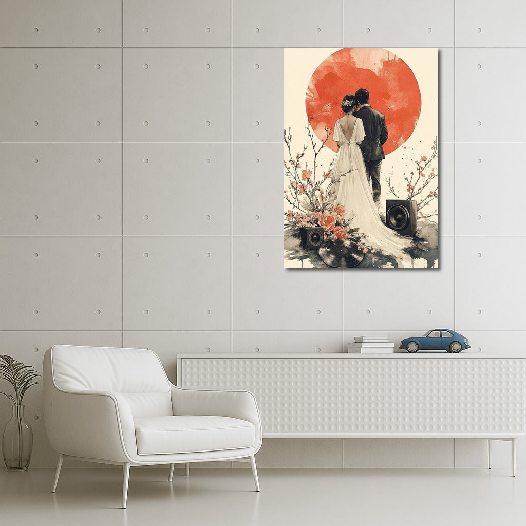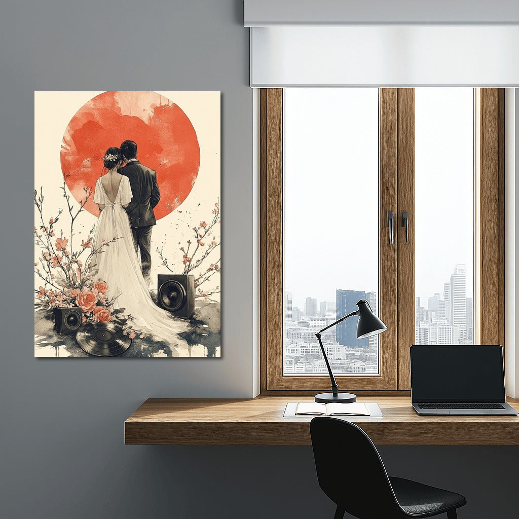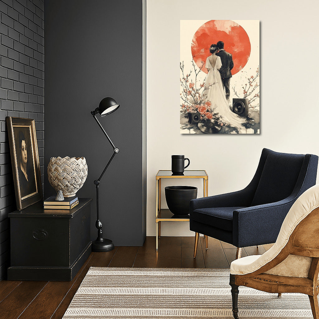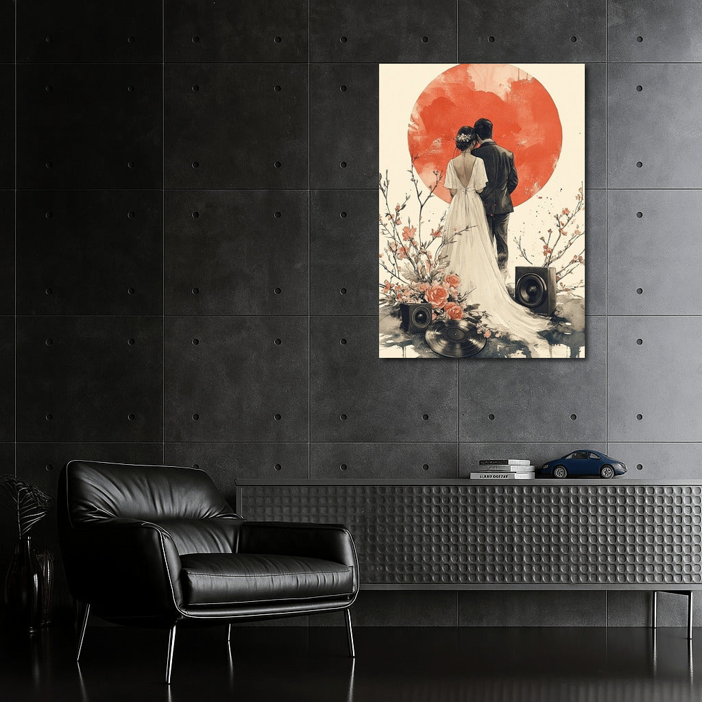 An elegant poster of a couple against a red sun. Ideal for wall decoration, it will bring a touch of romance and art to the interior. See more from the collection: Mixed Wall Art