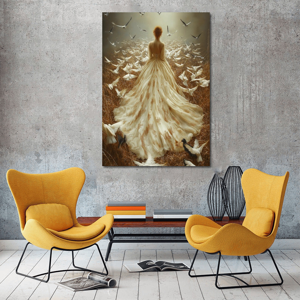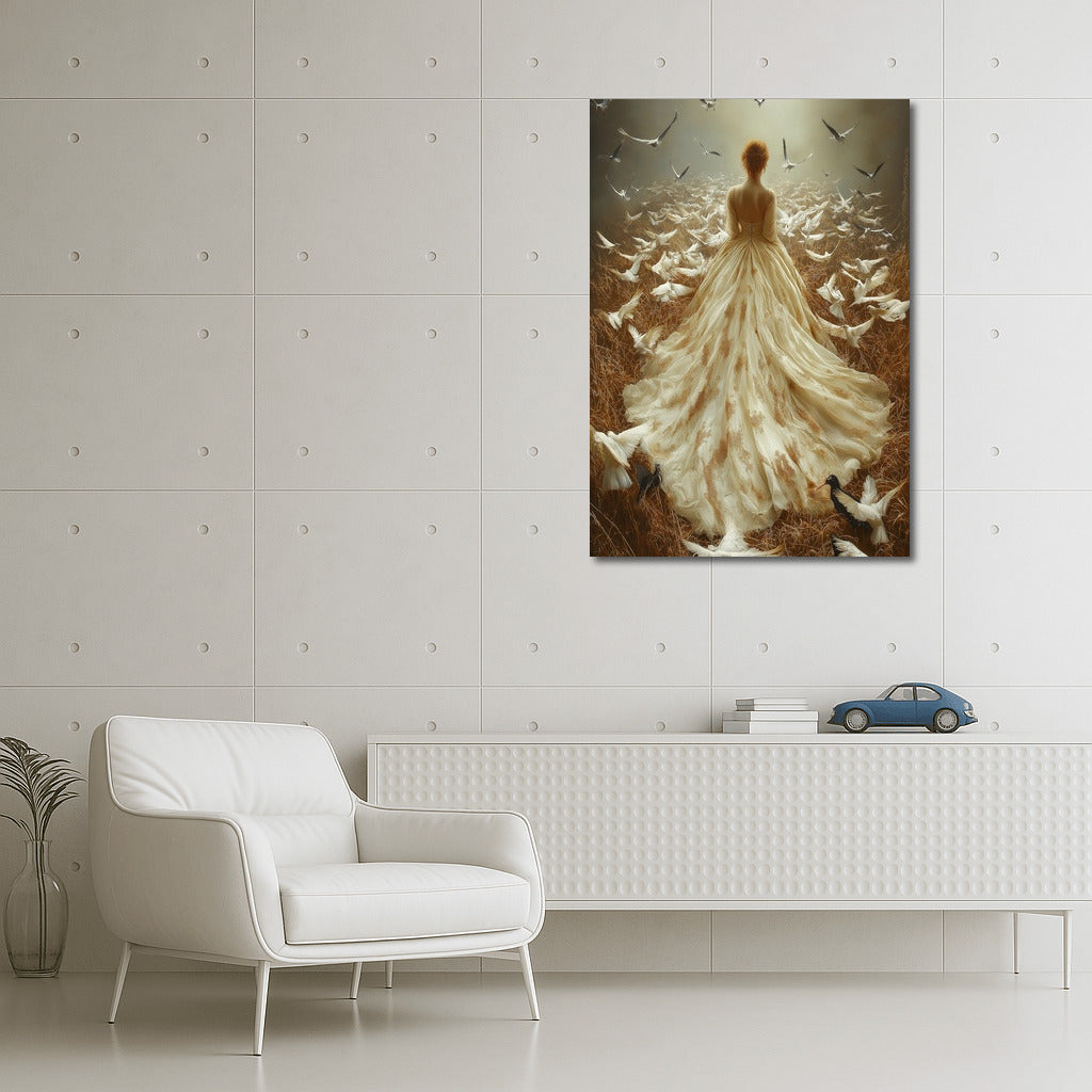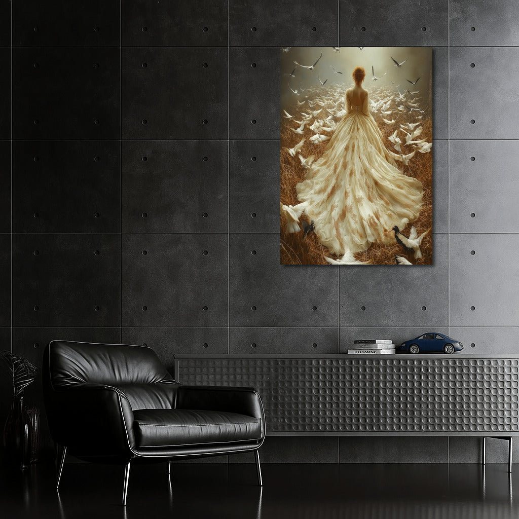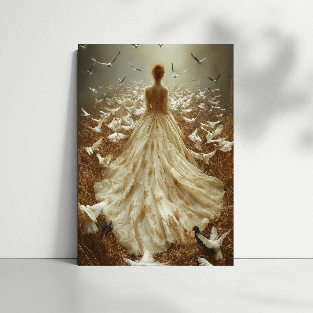 Immerse yourself in the magic: a mysterious figure among soaring birds. This poster will add sophistication to your wall art. See more from the collection: Wall Art with Women
