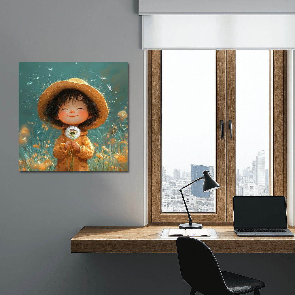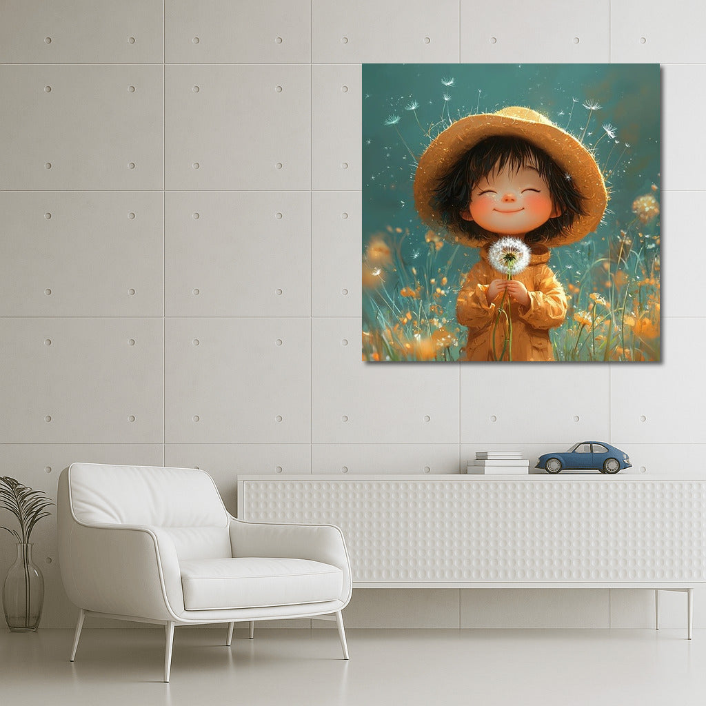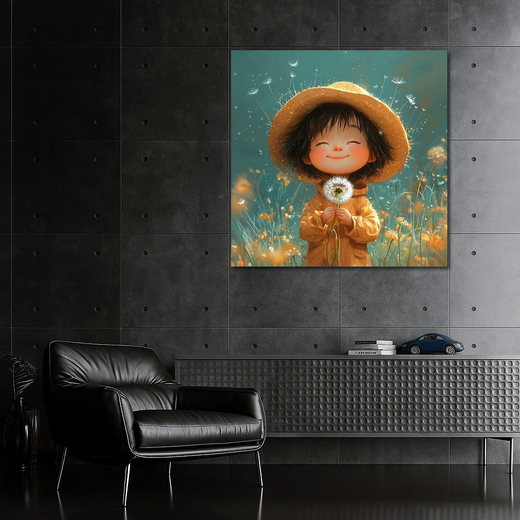 Sunny Poster: Smile and Dandelion. Wall art that awakens joy and tenderness in every day. See more from the collection: Cartoon Art