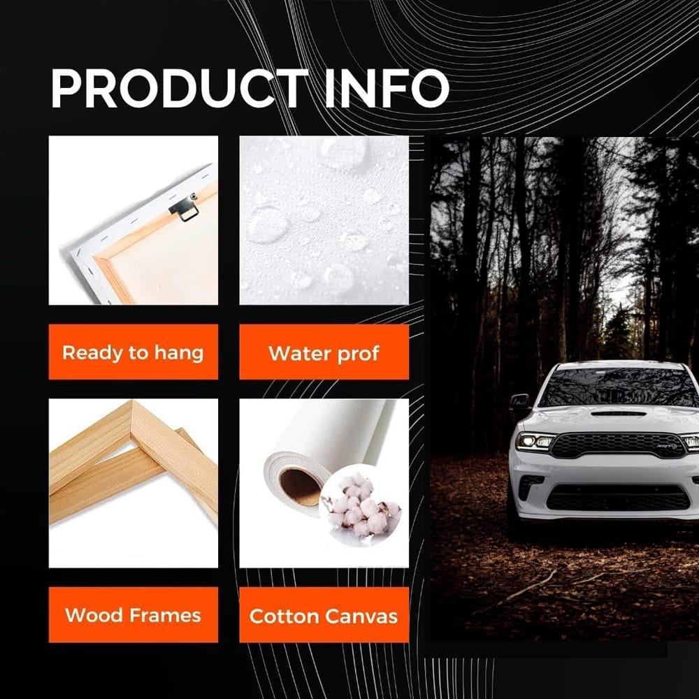 Turn on the lighter, look at this poster - just the bomb! Dodge in a dark autumn setting, as if it escaped from a night race. A painting that catches the eye, wall art for real guys. Such art is fire for a garage or a room. See more from the collection: Dodge Art