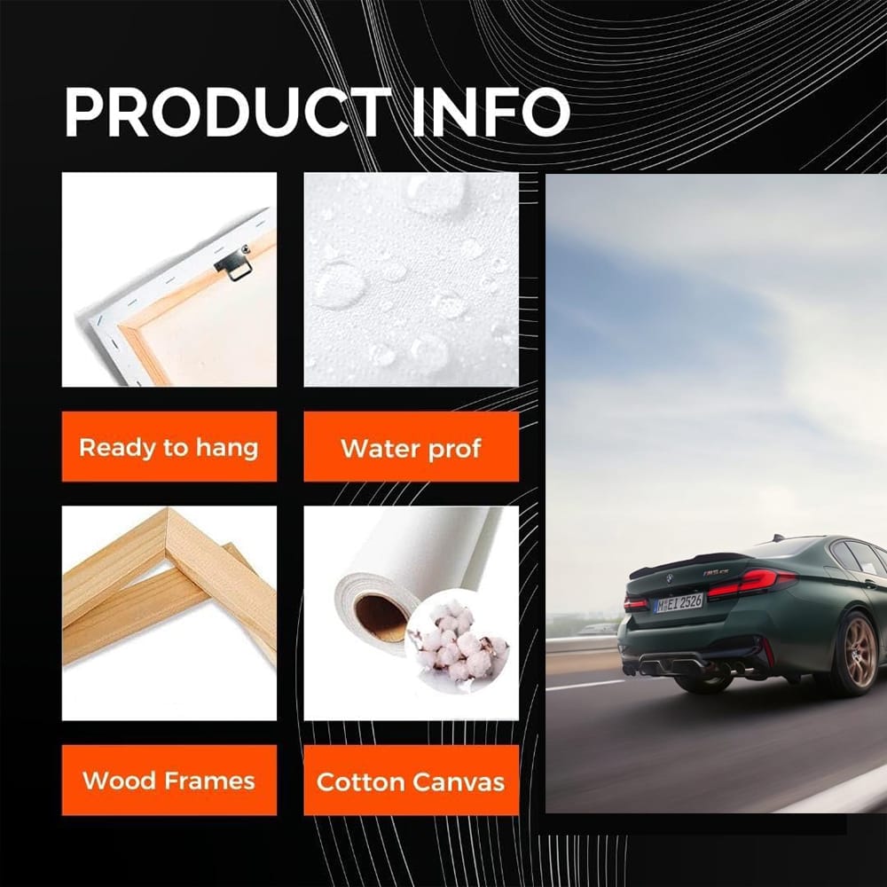 This poster is just fire! The dark green BMW M5 CS F90 in the painting is like a dream of any car enthusiast. Wall art for those who live for speed. Just look at it - and you immediately want to press the gas to the floor. Such art will definitely decorate any wall. See more from the collection: BMW 5 Series Art