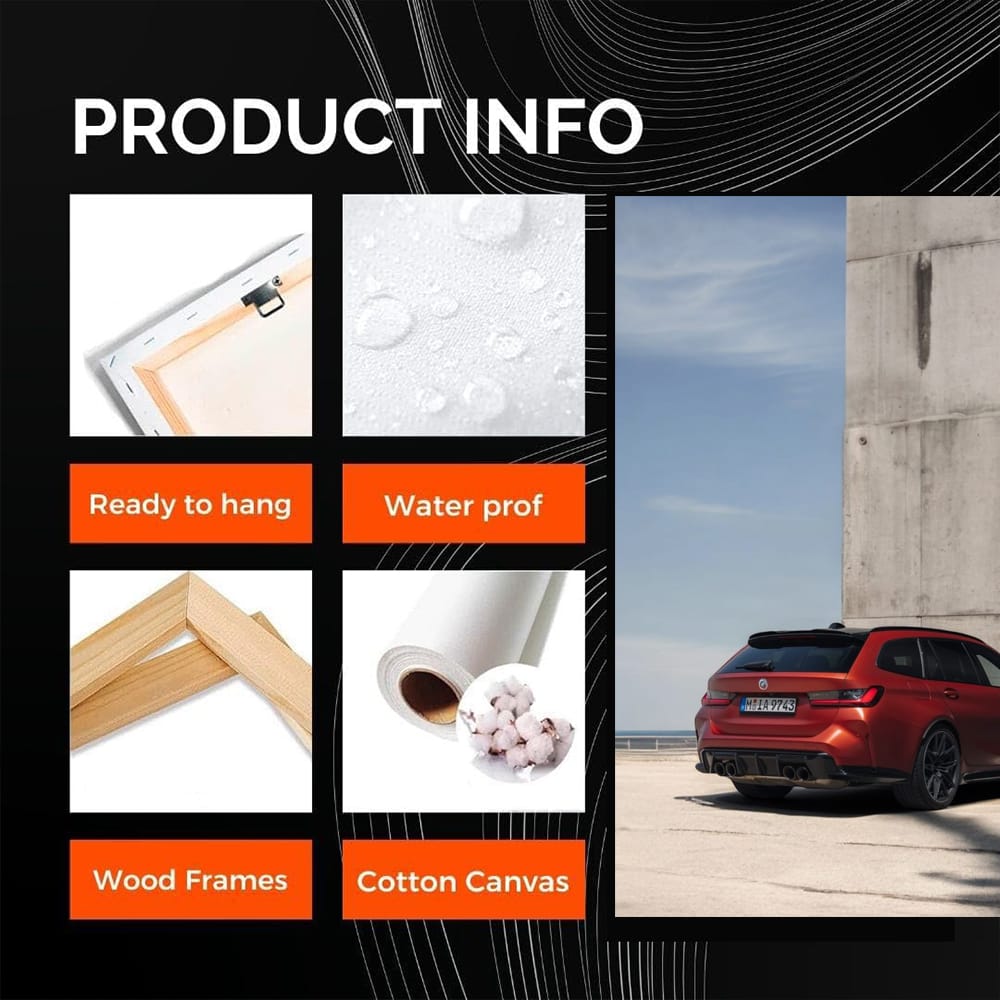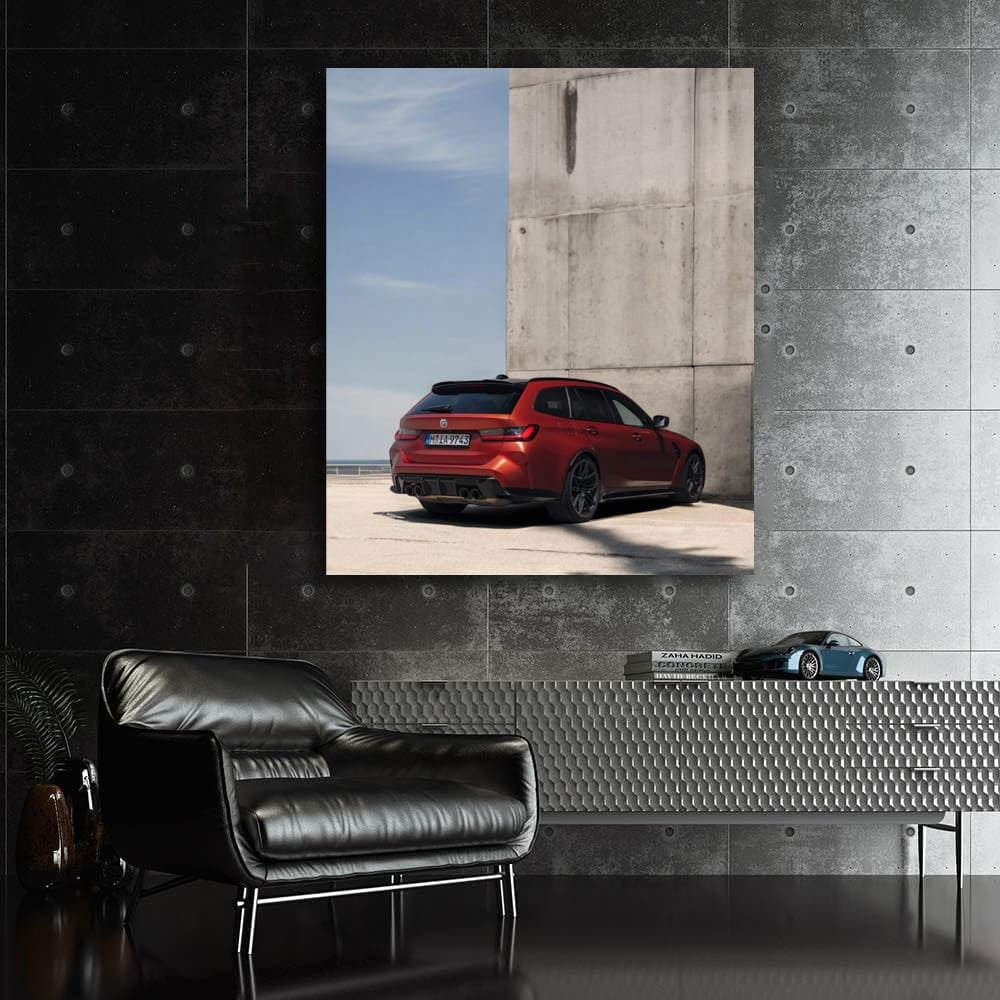 This painting is pure adrenaline on the wall! A poster with a dark orange BMW M3 Touring is like a nitro shot for speed lovers. Wall art that makes every car fan's blood boil. This is not just an image - it's a challenge, it's style, it's power! See more from the collection: BMW 3 Series Art