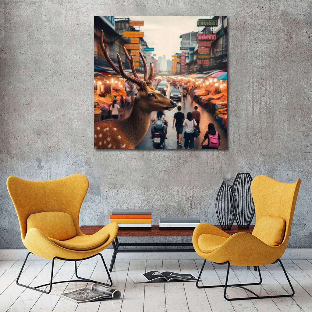 Deer among the colors of a Thai market in Bangkok Wall Art