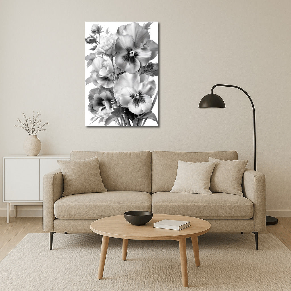 Delicate Pansies: Black and White Floral Masterpiece for Interior Wall Art