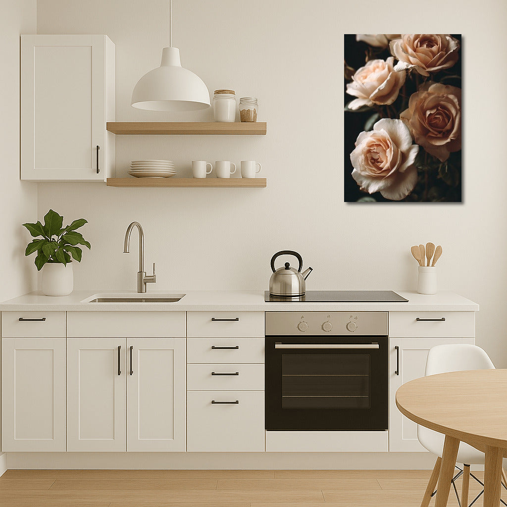 An elegant painting with delicate roses. The poster will enliven your interior, adding romance and grace of the floral world. See more from the collection: Flowers Art