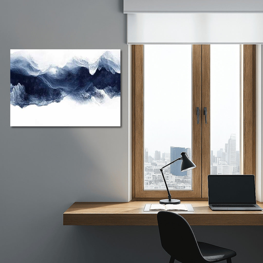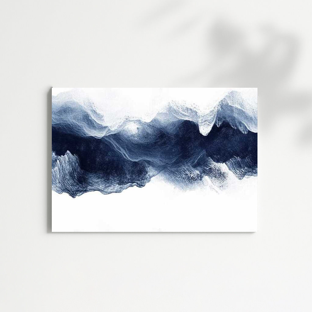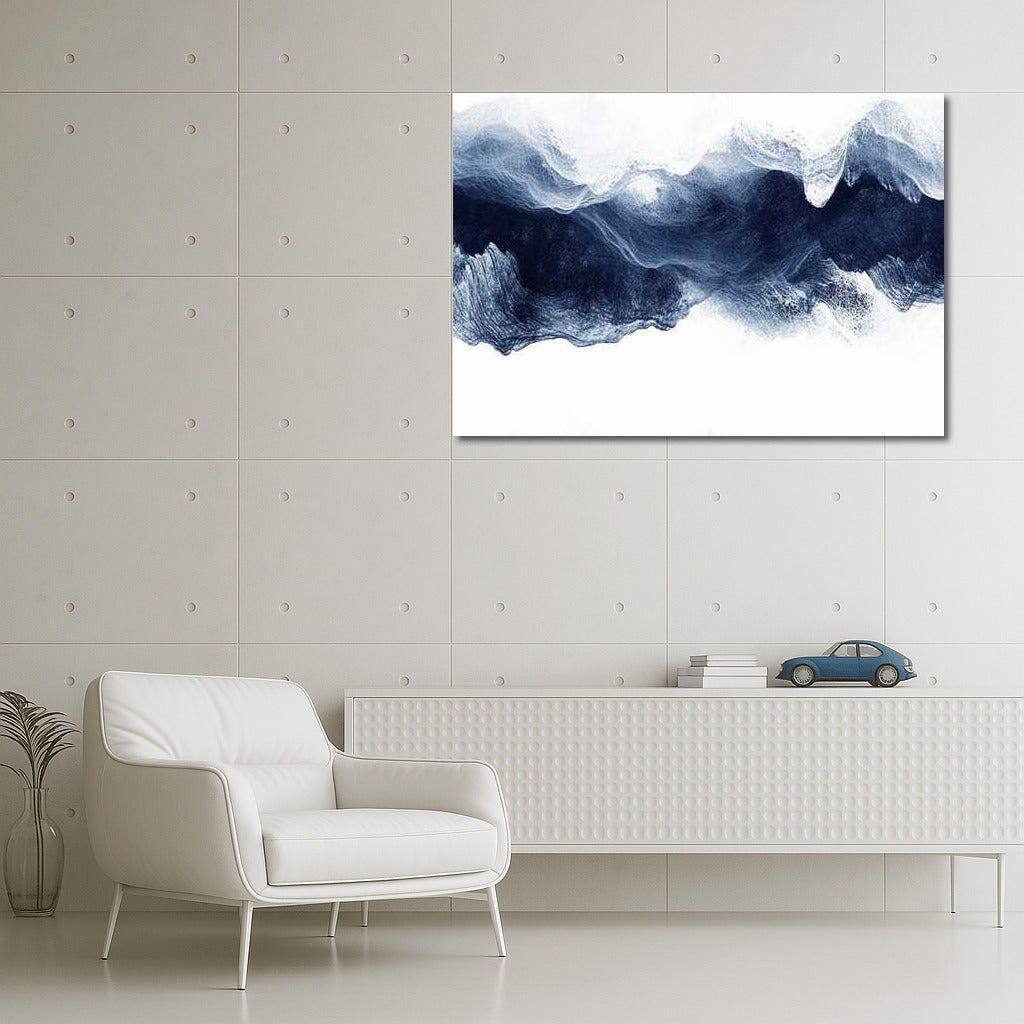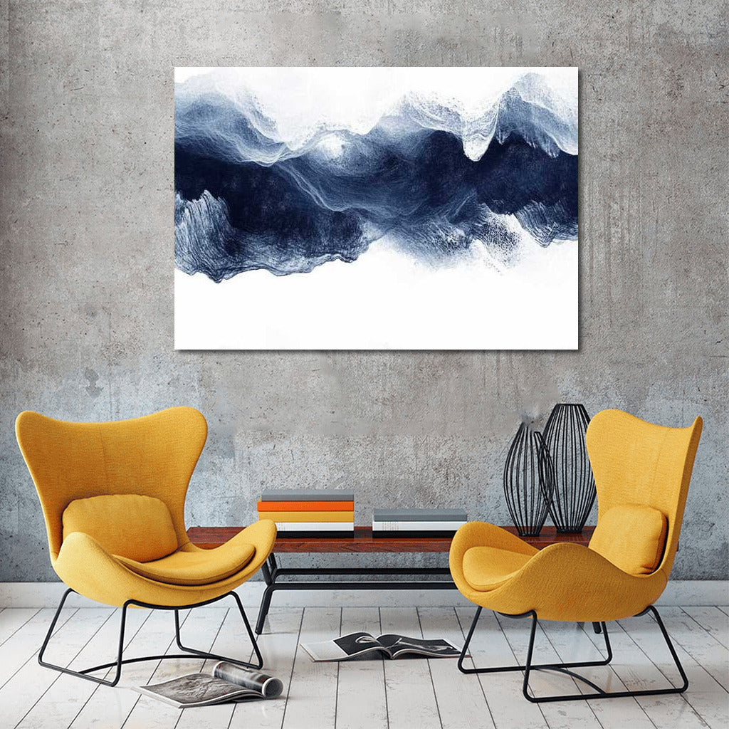 Dive into the depths of a dark blue abstract! A grainy textured painting will add a unique accent to your space. See more from the collection: Abstract Art