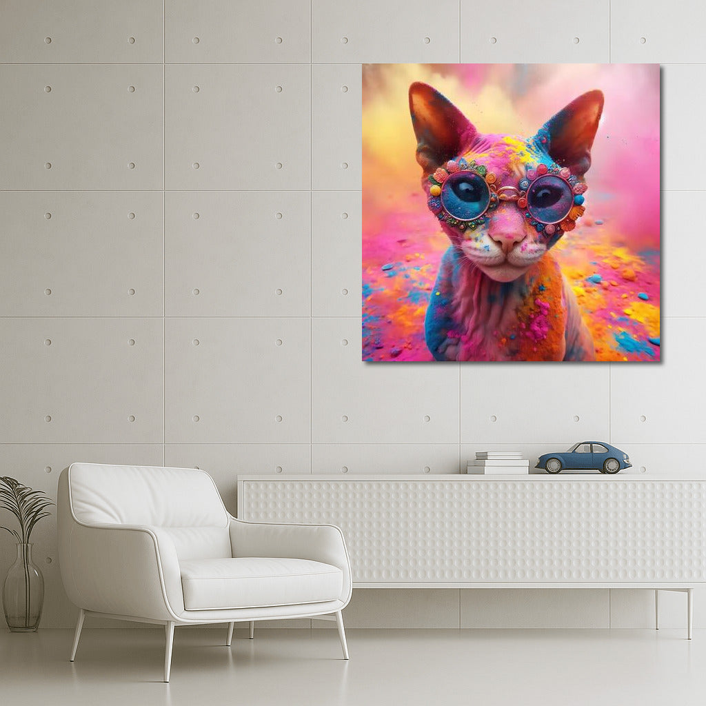 Devon Rex cat in a whirlwind of colours at the Holly Festival Wall Art