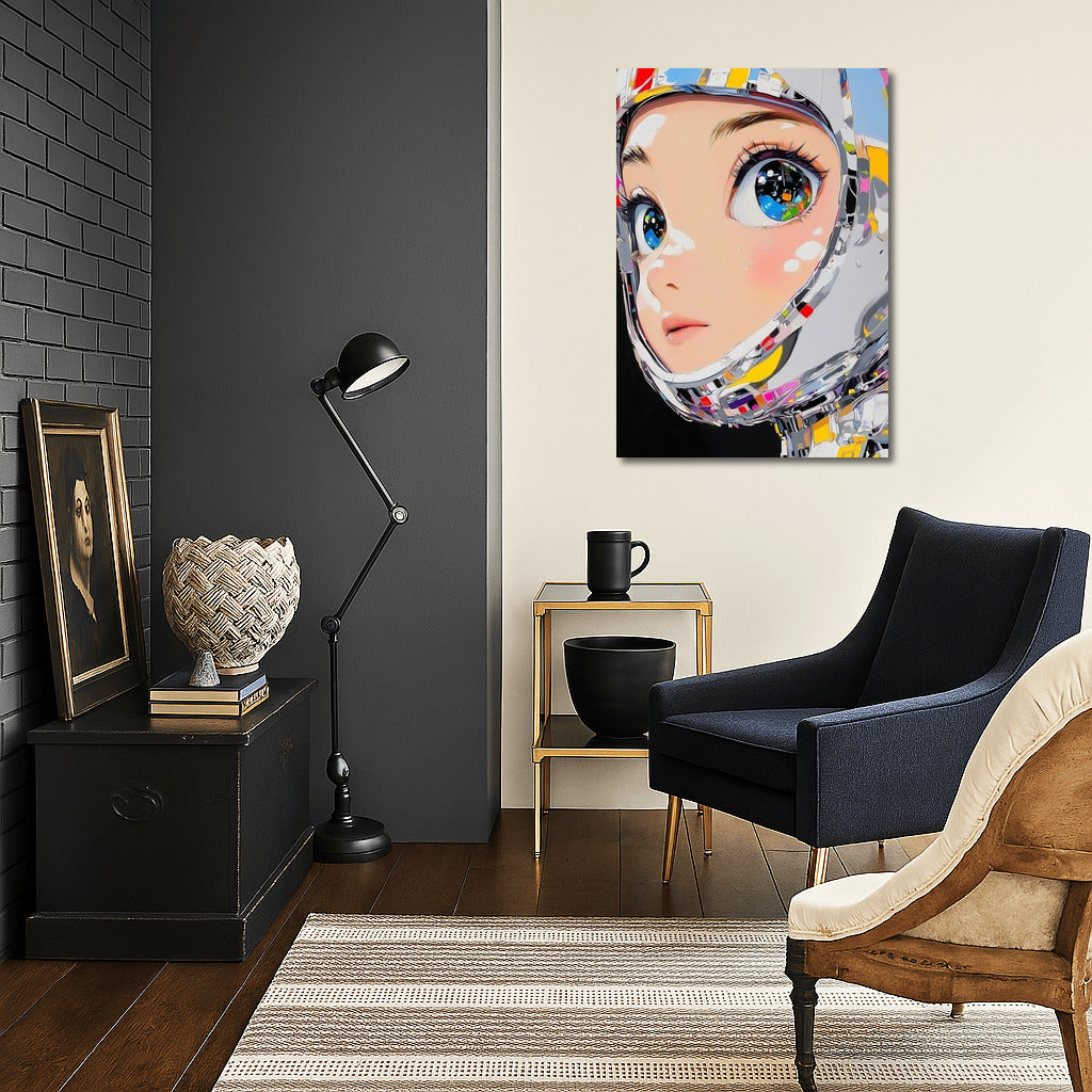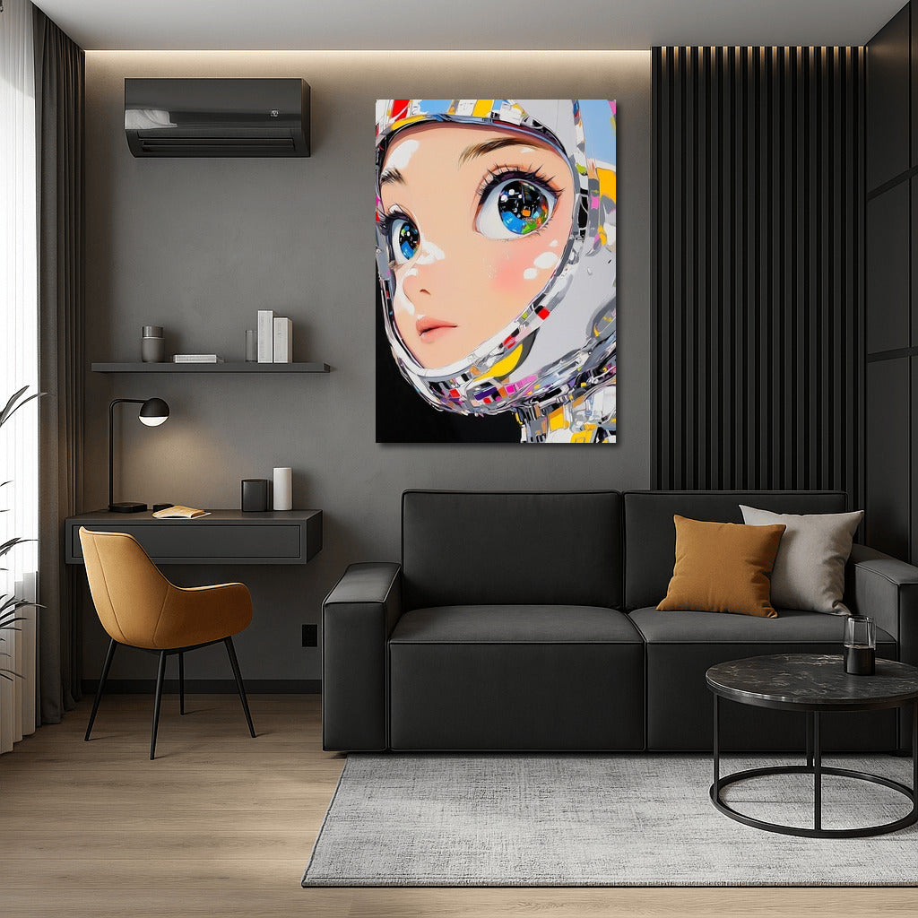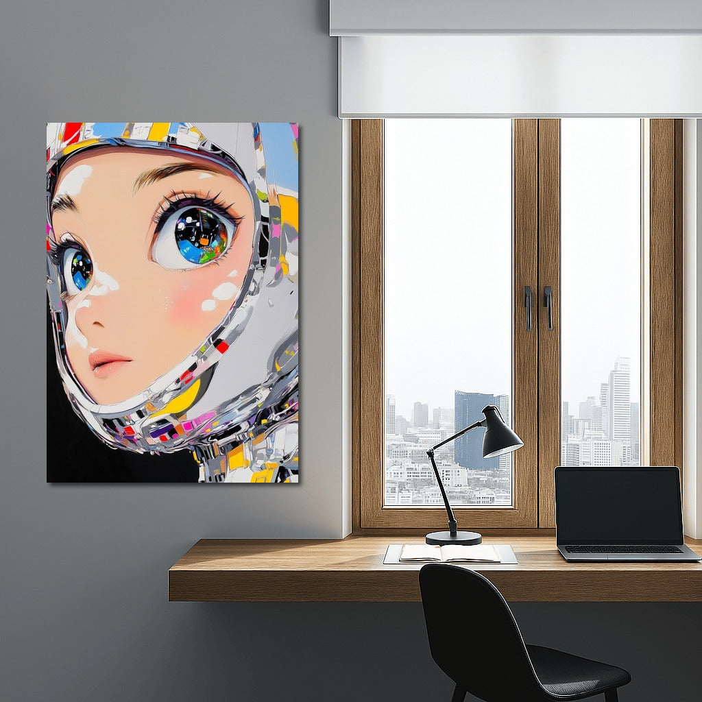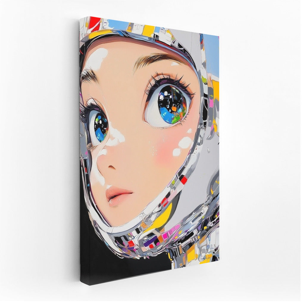 A vibrant poster with a futuristic look that immerses you in a world of digital dreams. This painting will liven up any space. See more from the collection: Anime & Manga genres Art