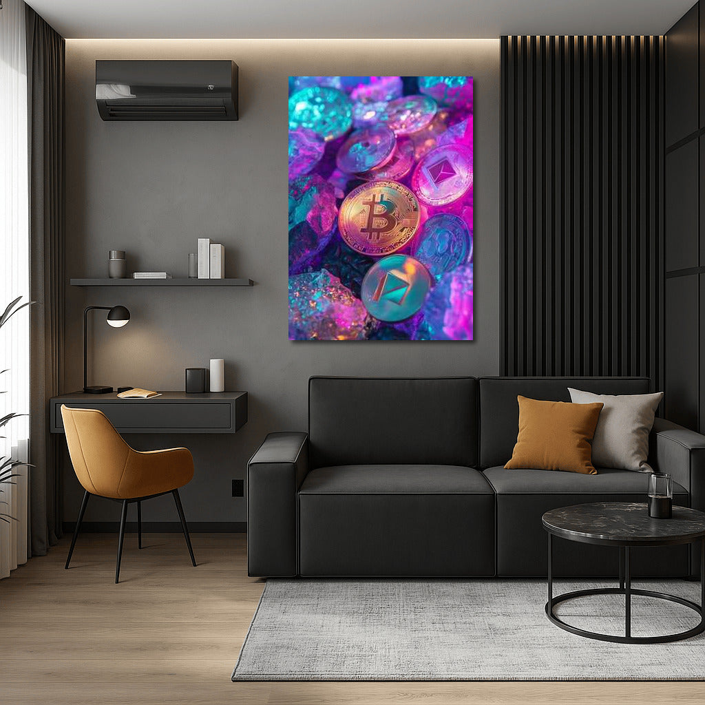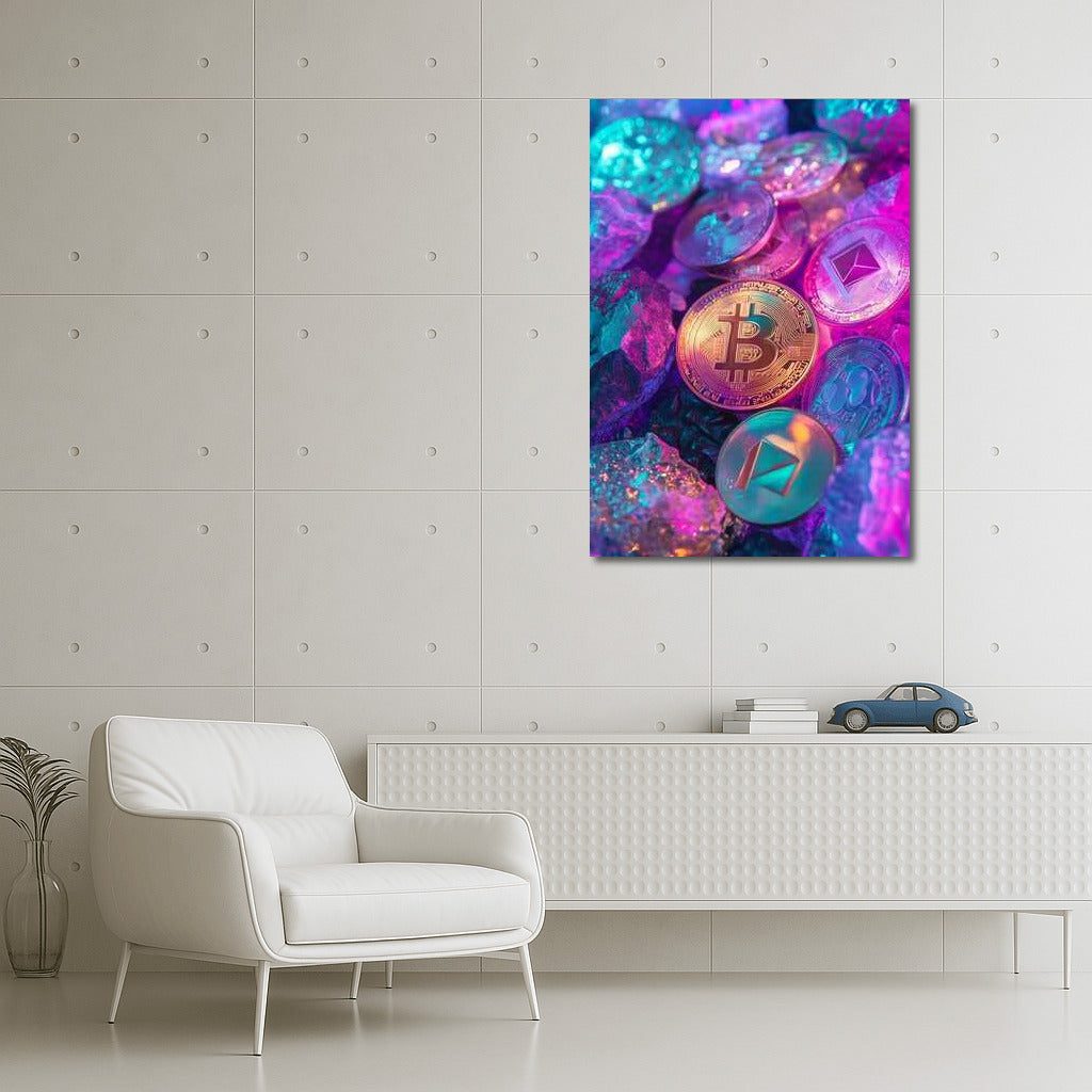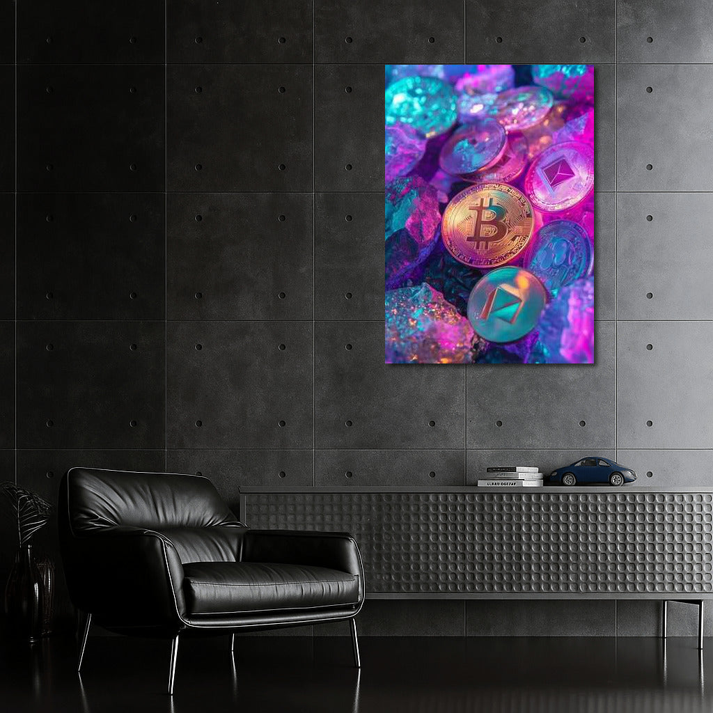 A vibrant cryptocurrency poster transforms walls into digital space, immersing you in the world of Bitcoin and Ethereum. Wall art of the future. See more from the collection: Cryptocurrency Art