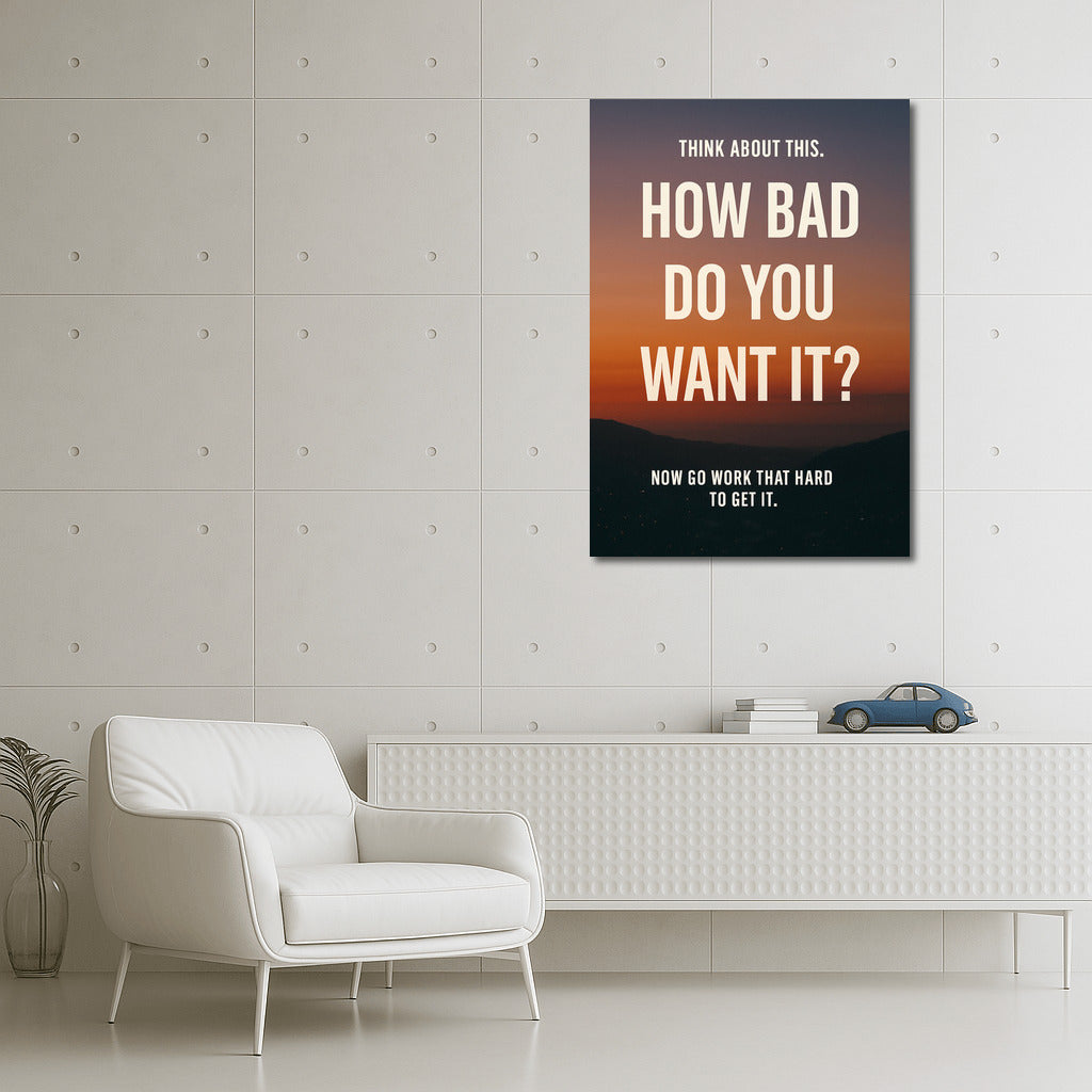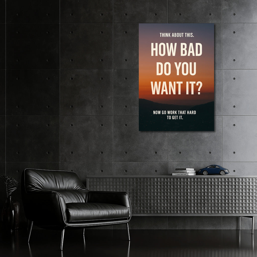 How bad do you want it? This motivational poster will inspire you to take action and boost your disciplined attitude! See more from the collection: Dreams & Vision Quotes Art