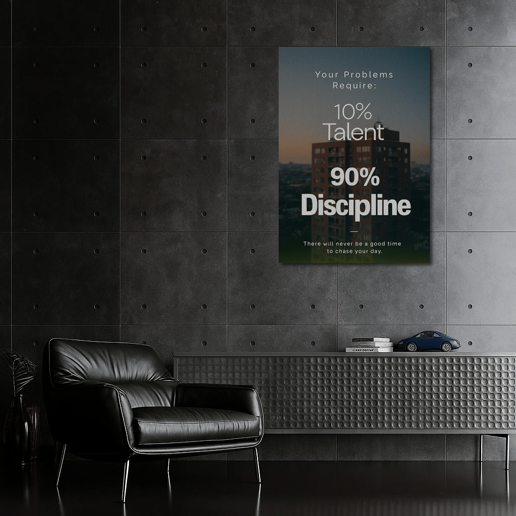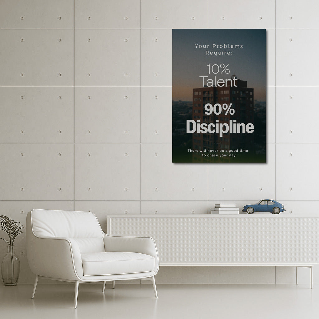 Your Problems Require 10 Talent 90 Discipline poster will inspire you to overcome any obstacle with the power of discipline. Wall art that motivates you every day! See more from the collection: Inspirational & Motivational Quotes Art