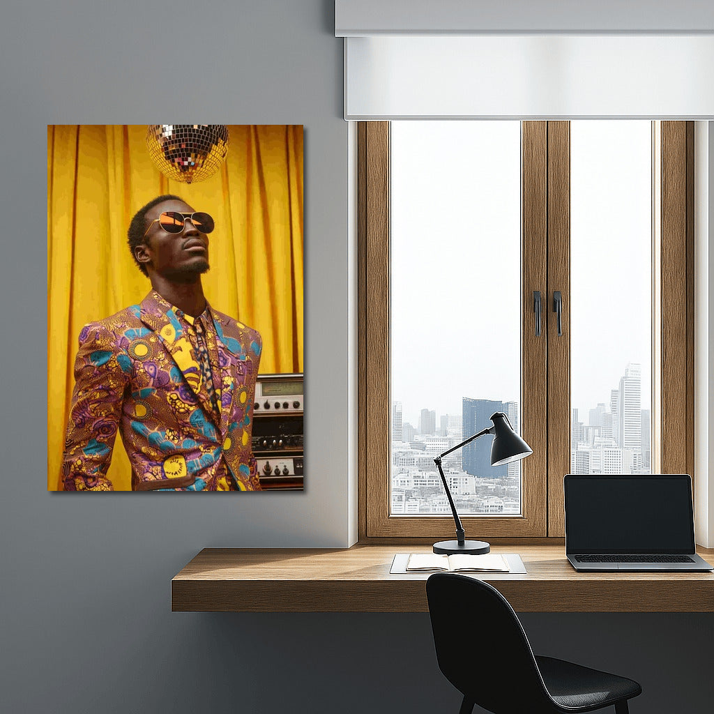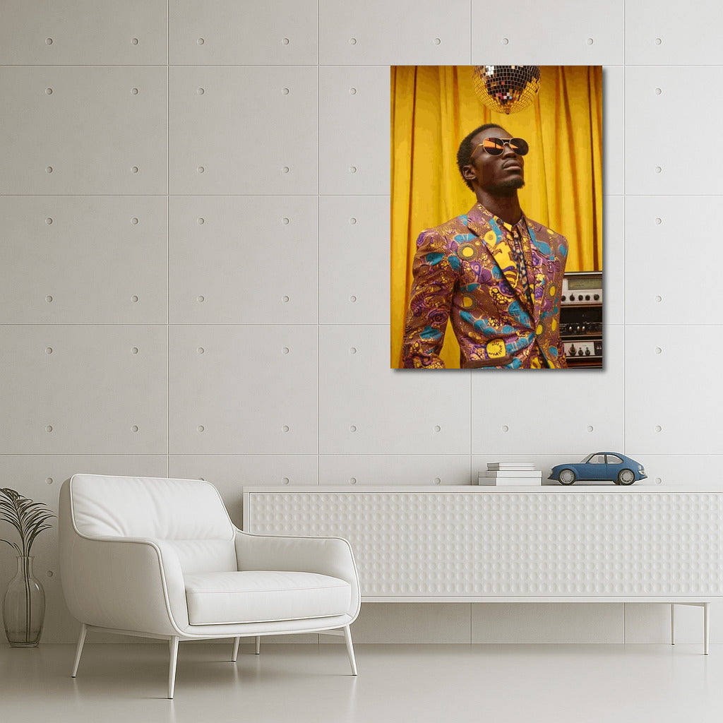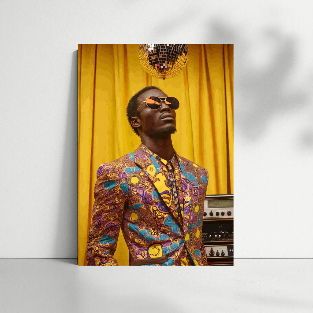 A vibrant poster-painting: style and music merge in an extravagant image under a glittering disco ball. Dream wall art! See more from the collection: Fashion Art