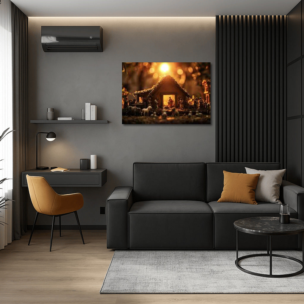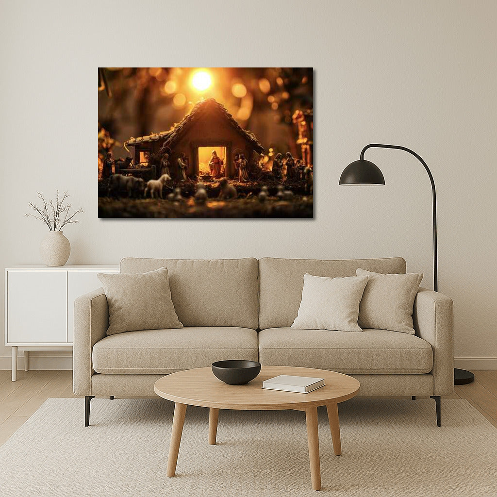 The warmth of Christmas in the glow of the sunset. Add magic to your interior with this painting that reflects the divine scene of the Nativity. See more from the collection: Religion Art