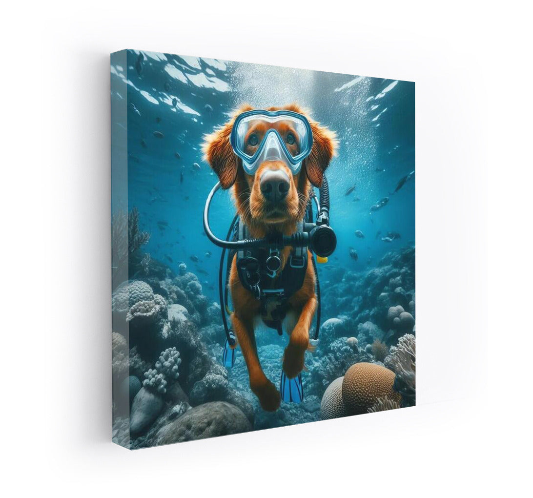 Scuba Dog Poster: An exciting underwater adventure and unforgettable wall art for lovers of the deep sea! See more from the collection: Animals Art