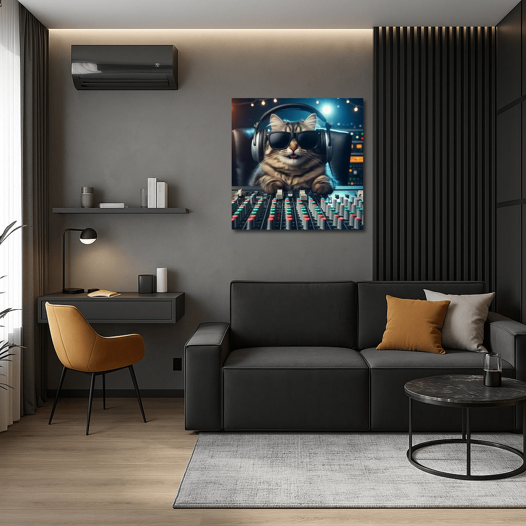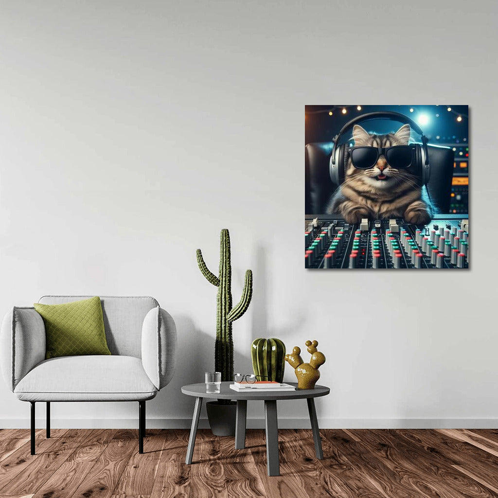 DJ Cat in Headphones: Music Producer 3 Wall Art