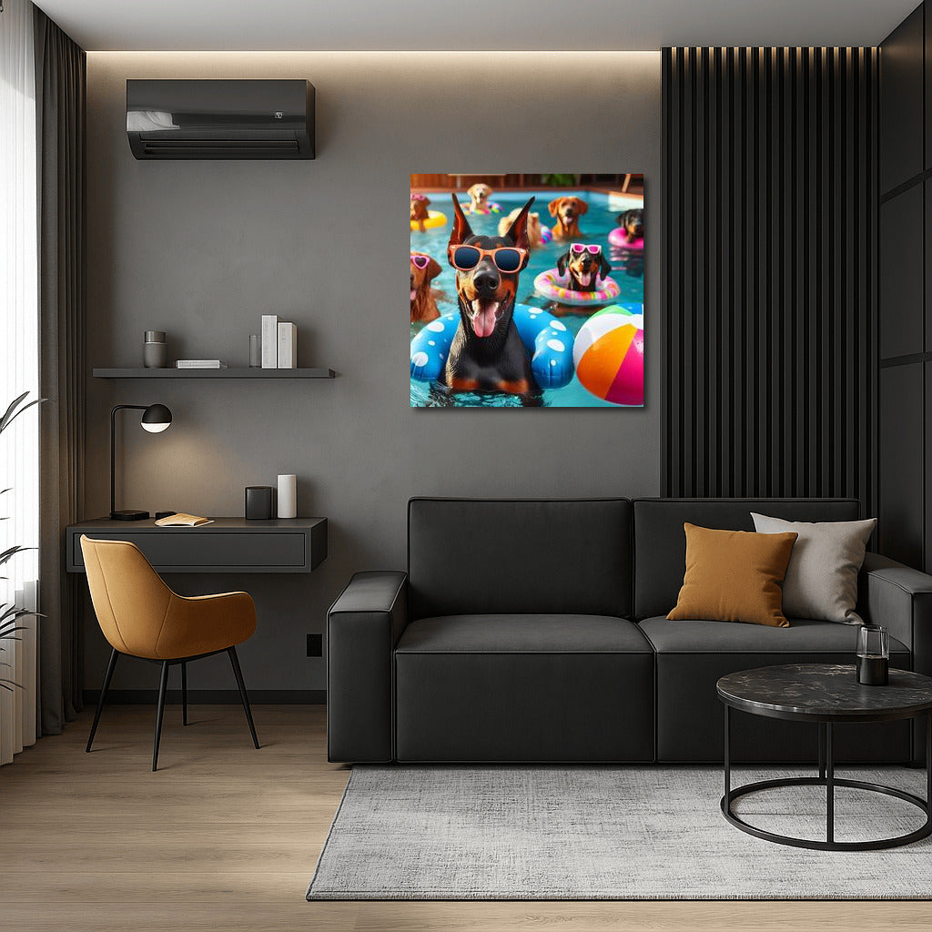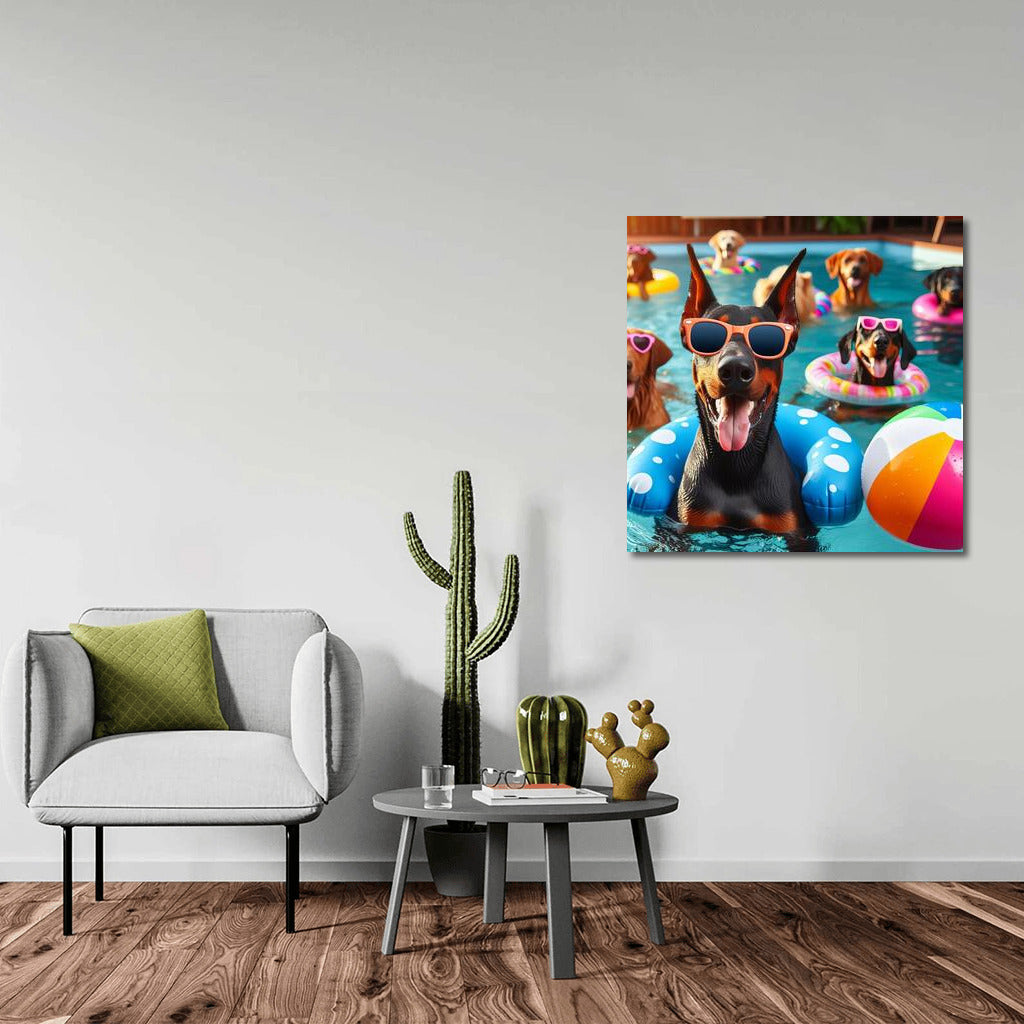 Doberman in Bright Glasses at Pool Party Wall Art