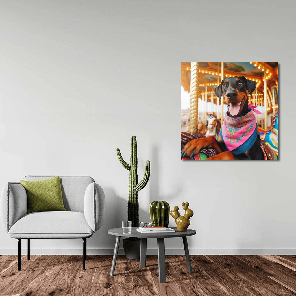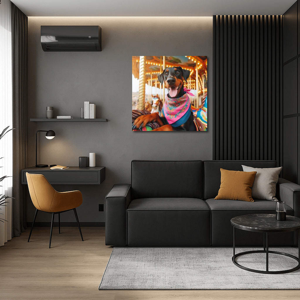 Immerse yourself in the magic of the park with a cheerful Doberman! This poster will liven up any space. Wall art with character. See more from the collection: Animals Art