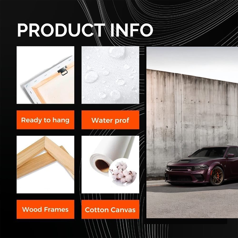 Dude, have you seen that painting on the wall where the Dodge is racing like it came out of hell? That's wall art for real car geeks. The poster catches your eye so much that you want to start the engine and burn it to the max. It's not just art, it's a challenge! See more from the collection: Dodge Art
