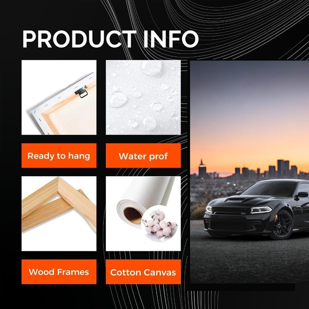 Wow, bro, this poster is the bomb! The city at sunset, cars rushing like it's the last lap on the track. Wall art for true connoisseurs of speed and adrenaline. The painting charges with energy and style, like the exhaust of a V8 at maximum revs. See more from the collection: Dodge Art