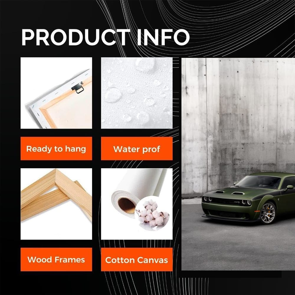 Bro, have you seen that Dodge poster? It looks like it came out of hell and got stuck on a concrete wall. Real wall art for those who breathe gasoline and live life at full speed. A painting that touches the soul of every car fan. See more from the collection: Dodge Art