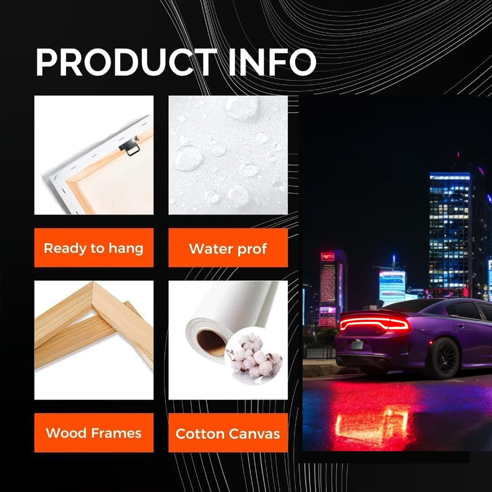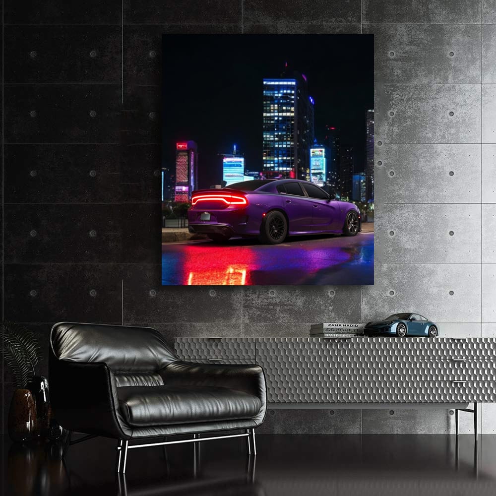 This poster is just the bomb! Night, in the foreground - a cool Dodge Challenger, ready to tear up the asphalt. The painting fits perfectly in the garage of any car fan. Wall art for those who are ready to race to the limit. See more from the collection: Dodge Art