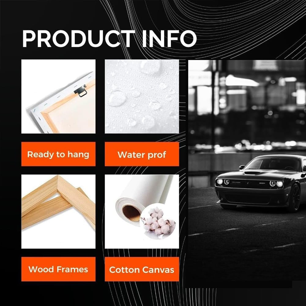 This painting is a real poster for those who are into cars! Black and white Dodge Challenger on the wall is like a challenge to everyone who has not yet understood what power and style are. Wall art for true connoisseurs of speed and adrenaline. See more from the collection: Dodge Art