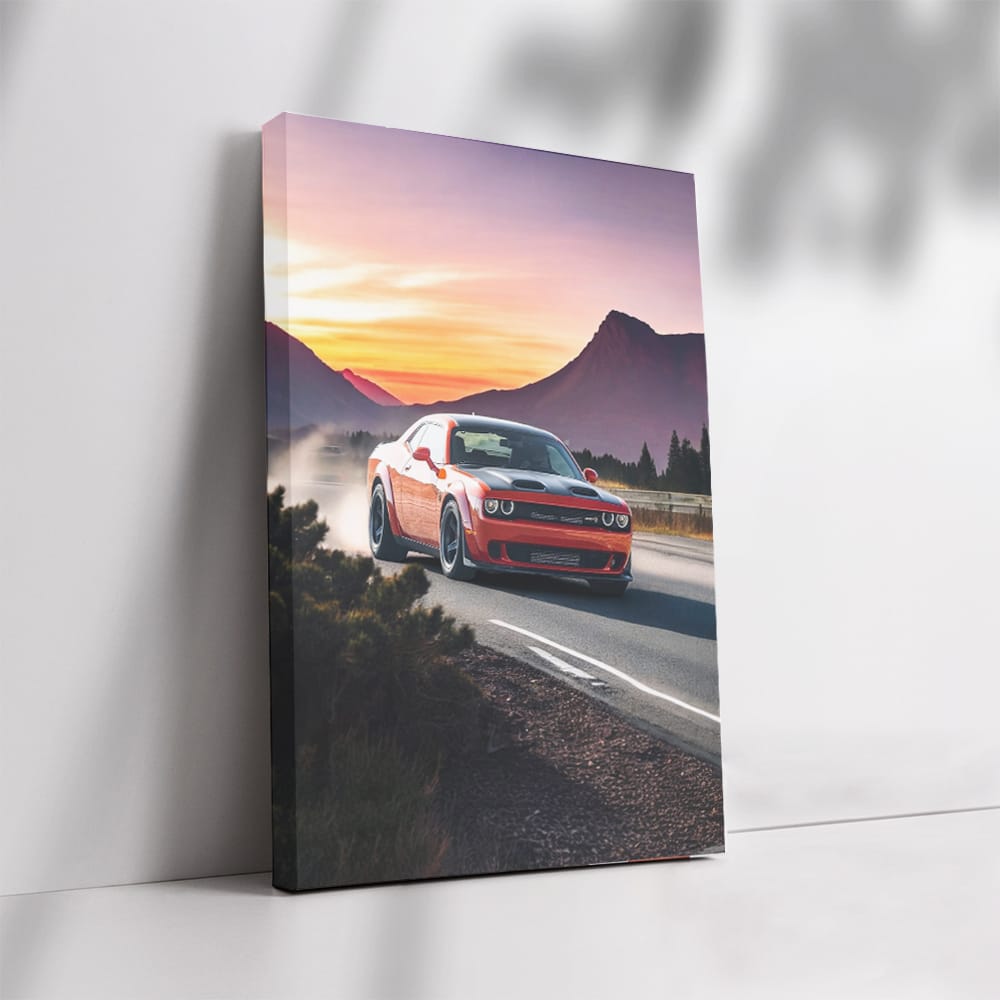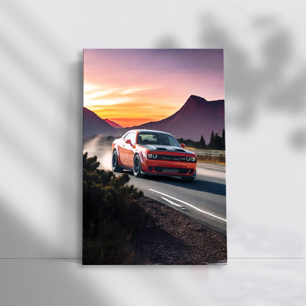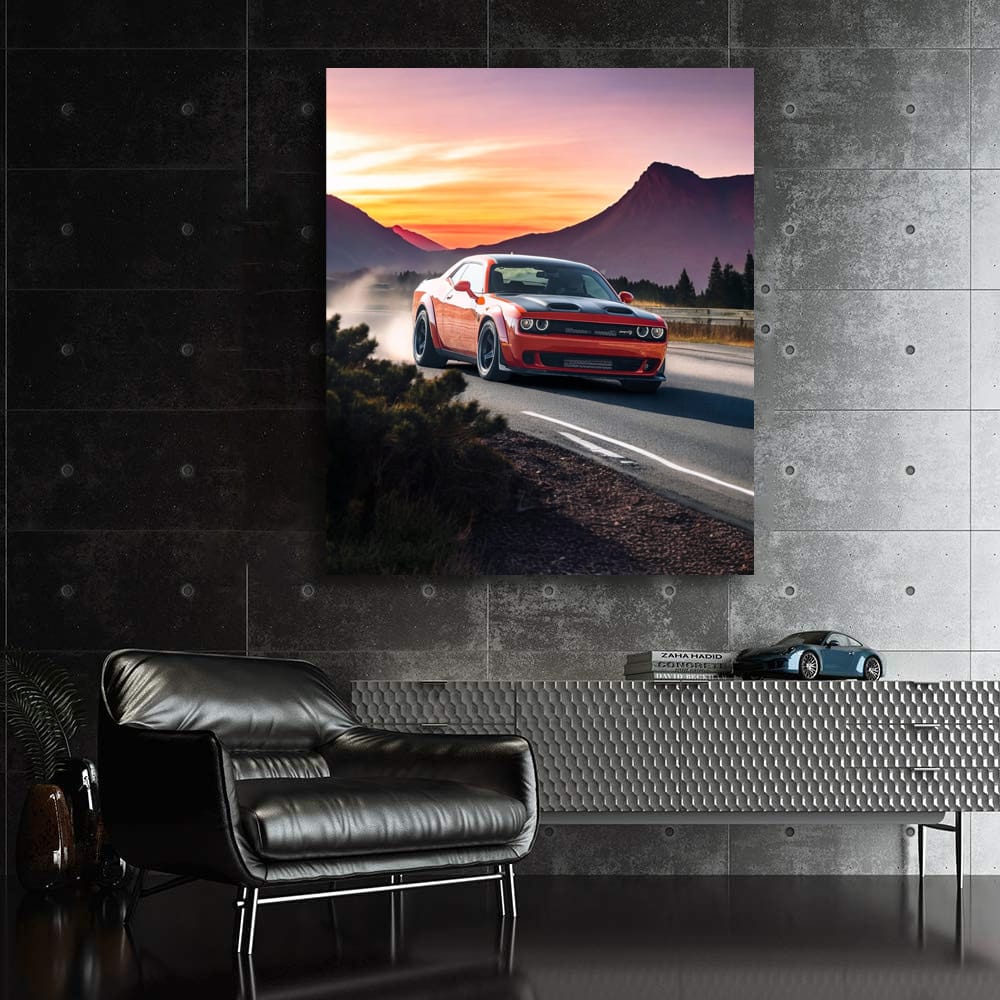 Dodge Challenger Cruising Highway - Bold and Powerful Wall Art