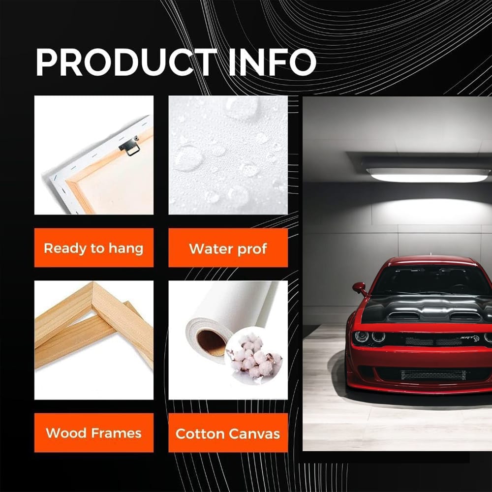 painting this: the legendary Dodge Challenger, frozen in time on a cheeky poster. This isn't just a painting on the wall, this is wall art that roars with power and speed even when it's standing still. A real find for car lovers! See more from the collection: Dodge Art