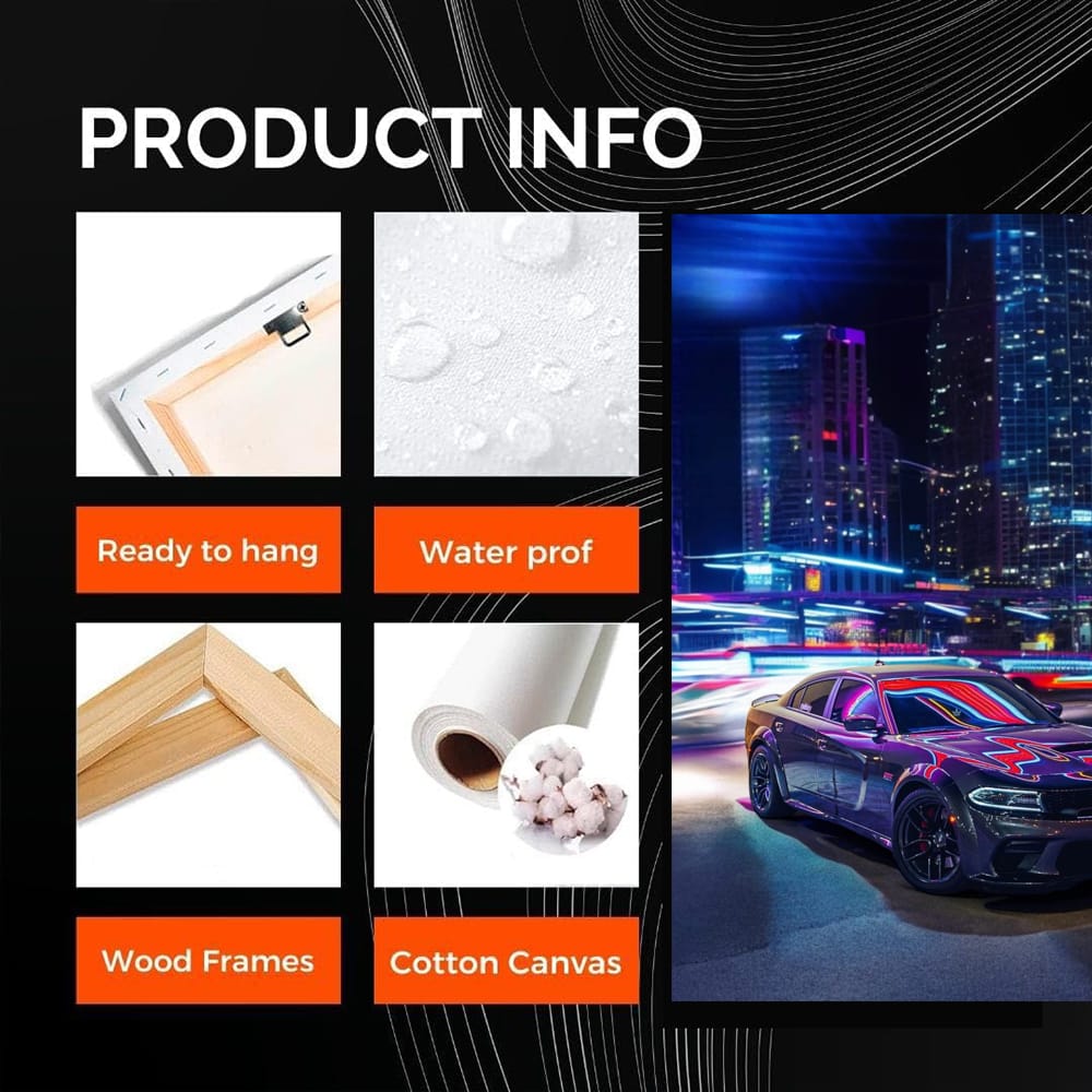Hey bro, check out this poster! Dodge Charger, at night, like a predator on the hunt. This wall art screams speed and power. An adrenaline rush on the wall, a painting for true fans of iron horses. Just fire! See more from the collection: Dodge Art