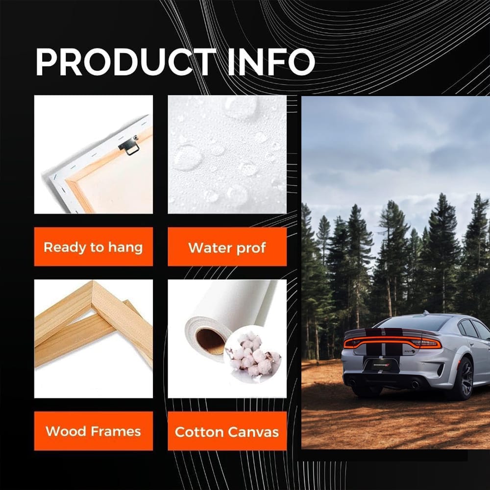 This poster is a must-have for anyone who loves the sound of engines. The painting of the Dodge Charger in the forest is not just wall art, it is a challenge to speed and style. The Charger is hidden among the trees, ready to break the silence. See more from the collection: Dodge Art