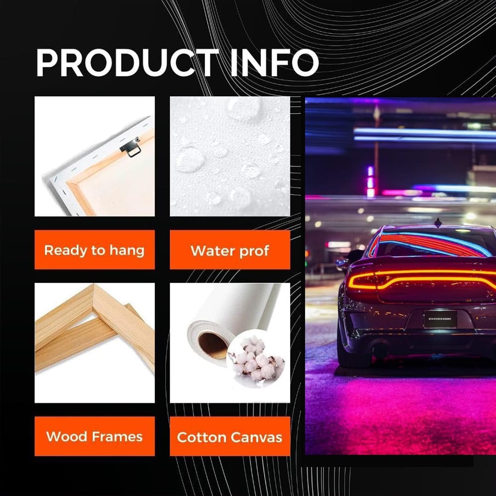This poster is a real fire! Charger on the night highway looks like a predator, ready to tear up the asphalt. The painting embodies power and style. Such wall art simply must hang on everyone who understands a lot about cars. Old school and speed merge into one painting. See more from the collection: Dodge Art