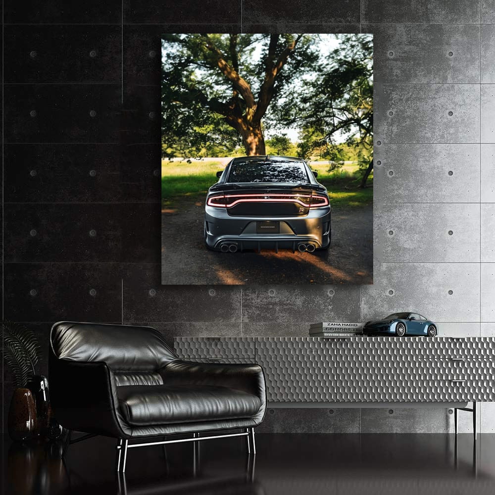 Dodge Charger Parked in Garden - Bold Muscle Car Wall Art