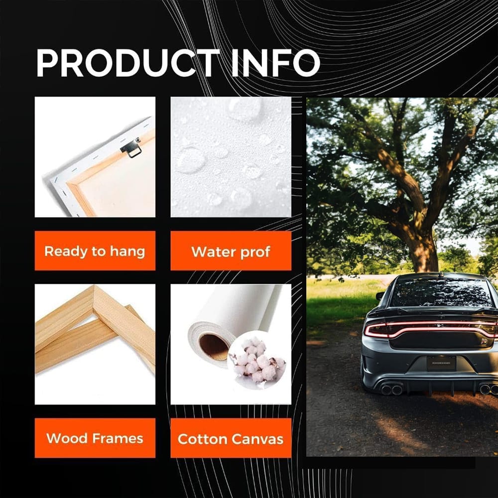 Imagine a poster of a Dodge Charger sitting in the garden, as if it were going into retirement. This masterpiece of wall art is a car fan's dream: aggression and style frozen in motion. A painting that will send shivers down your spine. See more from the collection: Dodge Art